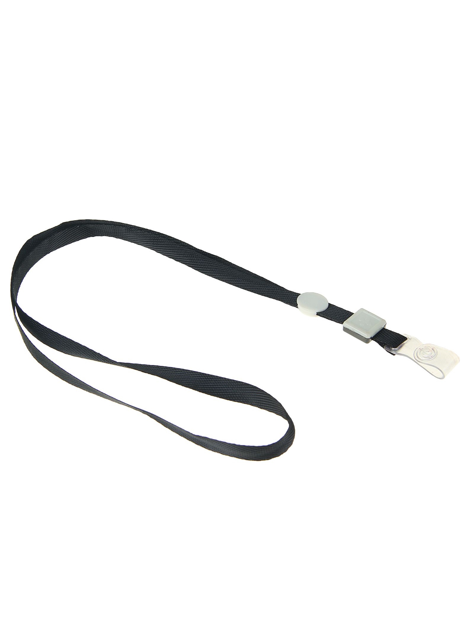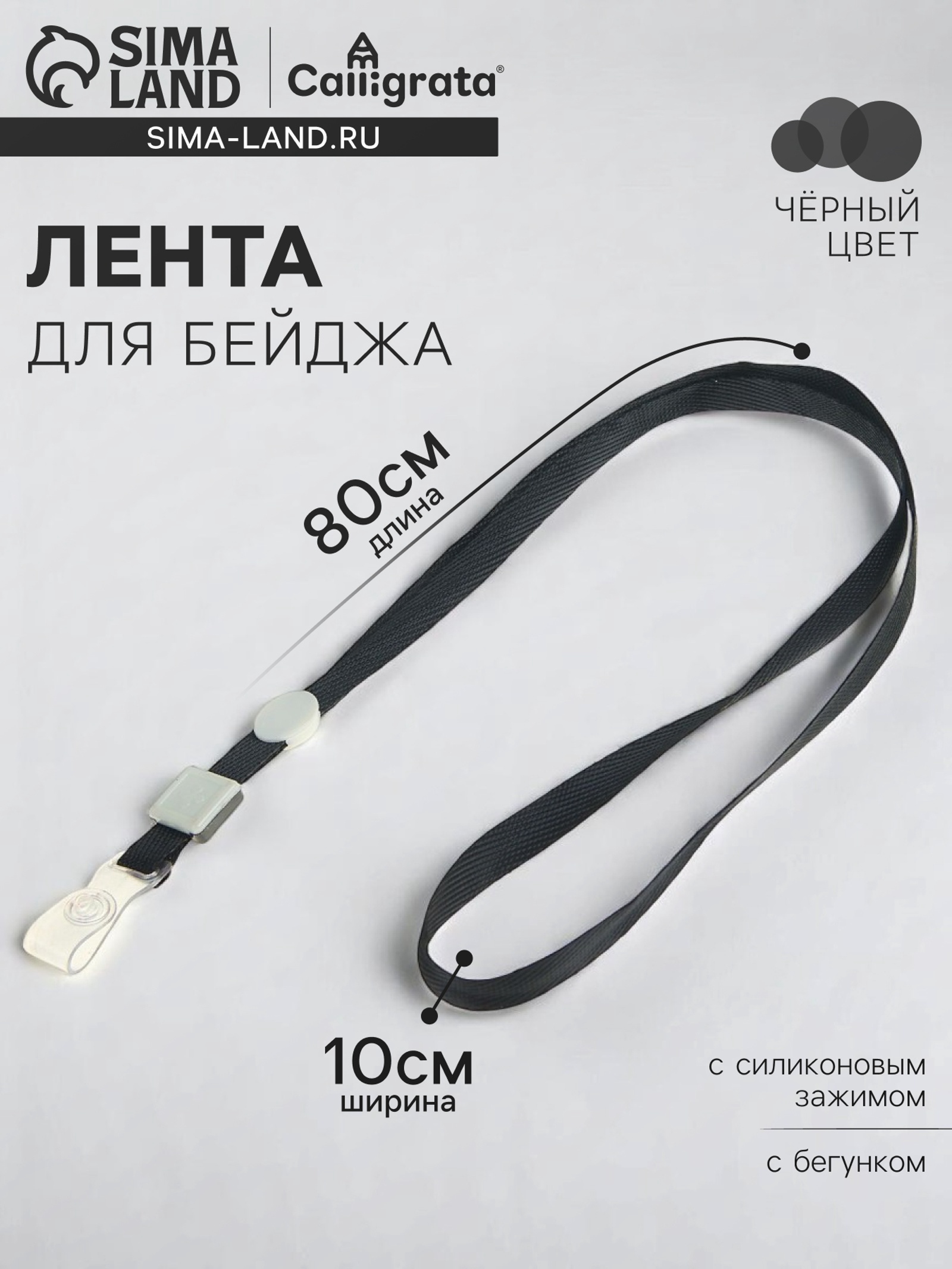 Лента для бейджа, 10 мм 80 см, плотная, с бегунком и с силиконовым зажимом, чёрная