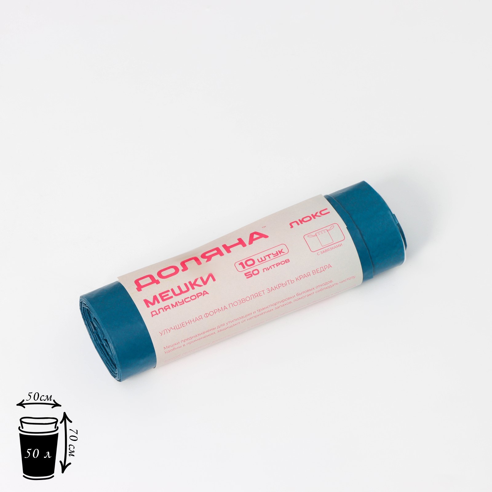 Мешки для мусора с завязками доляна «люкс», 50 л, 25 мкм, 50x70 см, пвд, 10 шт, цвет синий, микс