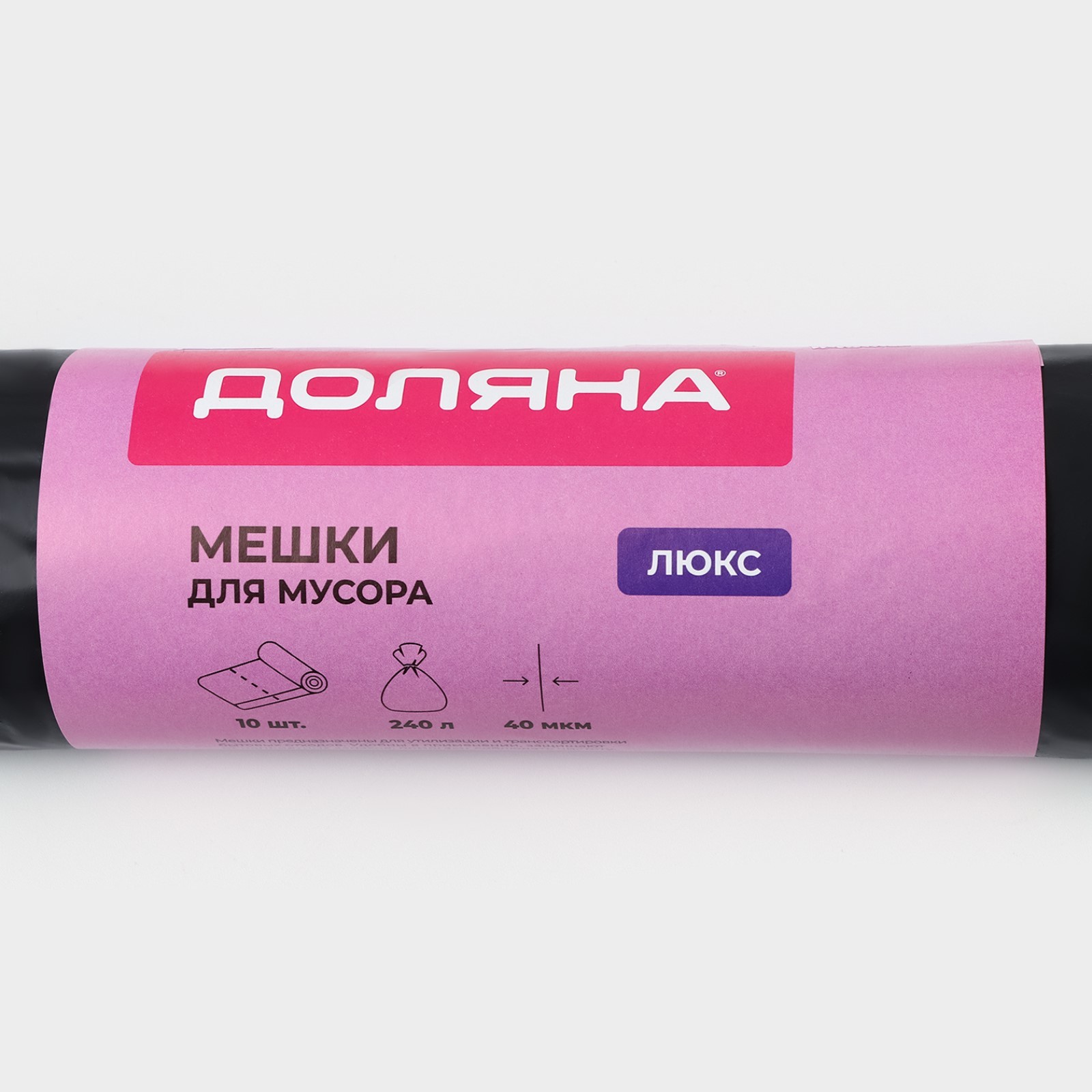 Мешки для мусора доляна «люкс», 240 л, 40 мкм, 86x120, пвд, 10 шт, цвет чёрный
