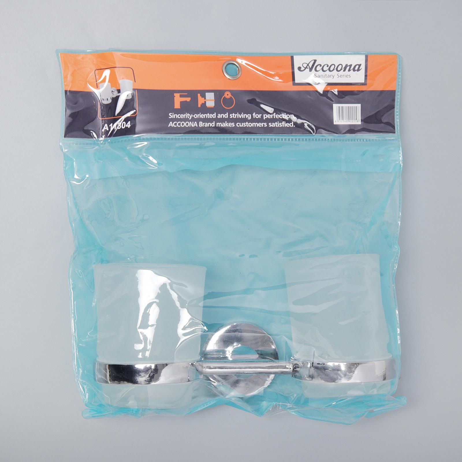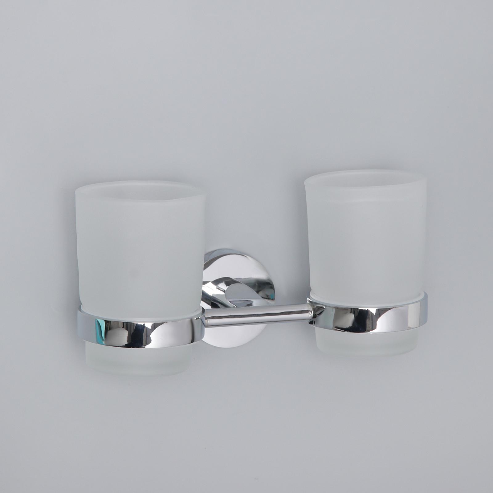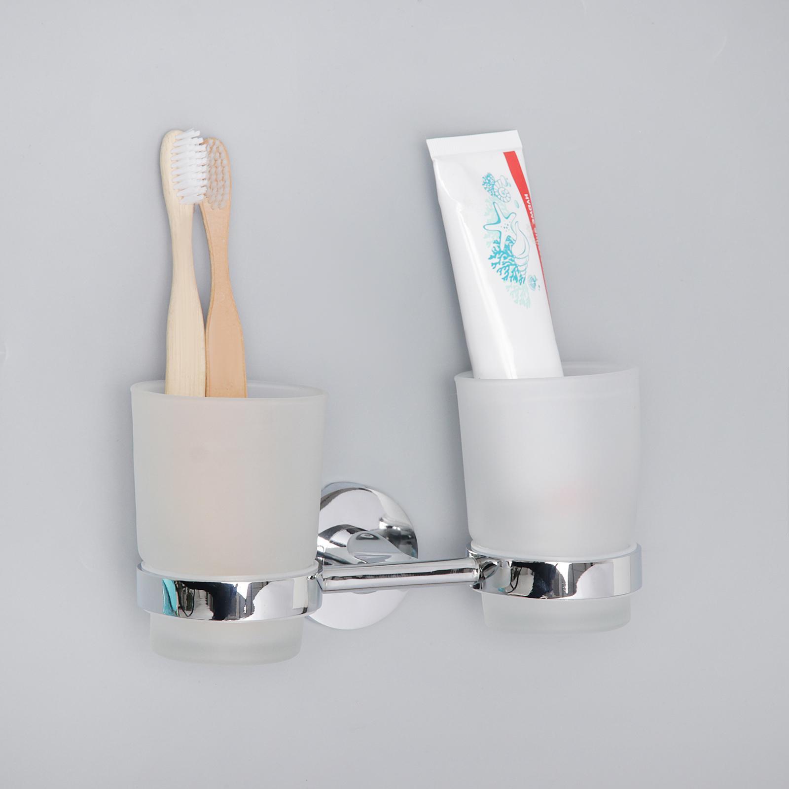 Держатель для зубных щёток, настенный, Accoona а11304, 2 стакана, стекло, цвет хром