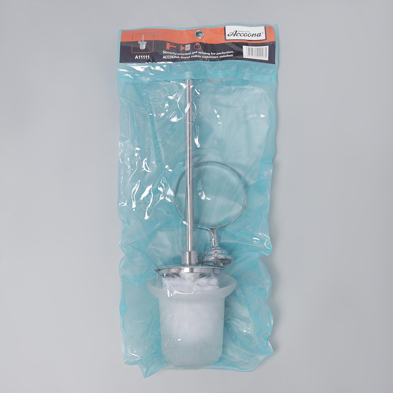 Ёрш для унитаза настенный с крышкой Accoona, 11x14x36 см, стекло, цвет хром