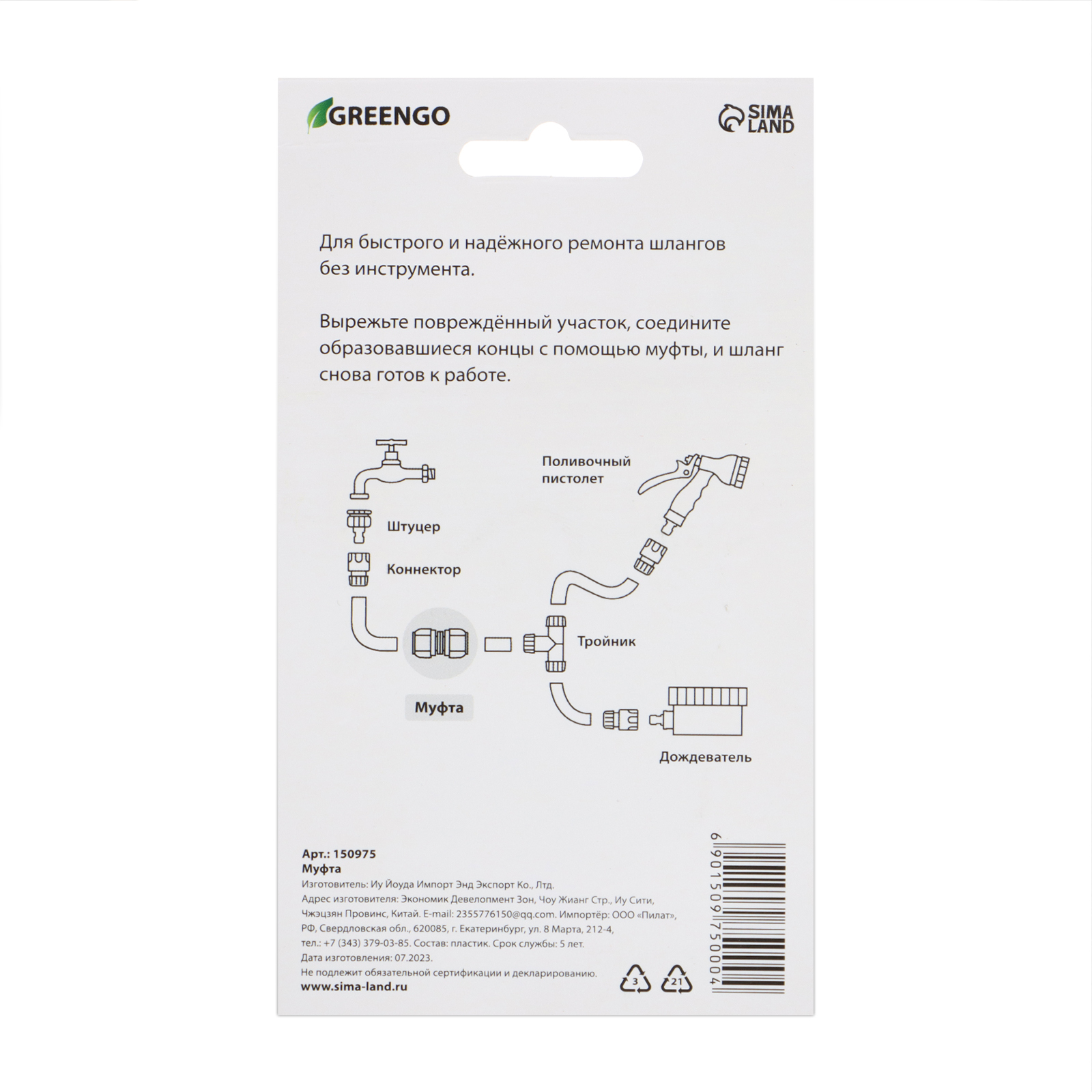 Муфта соединительная, для шлангов 3/4 (19 мм), цанговое соединение, рр-пластик, цвет микс, Greengo