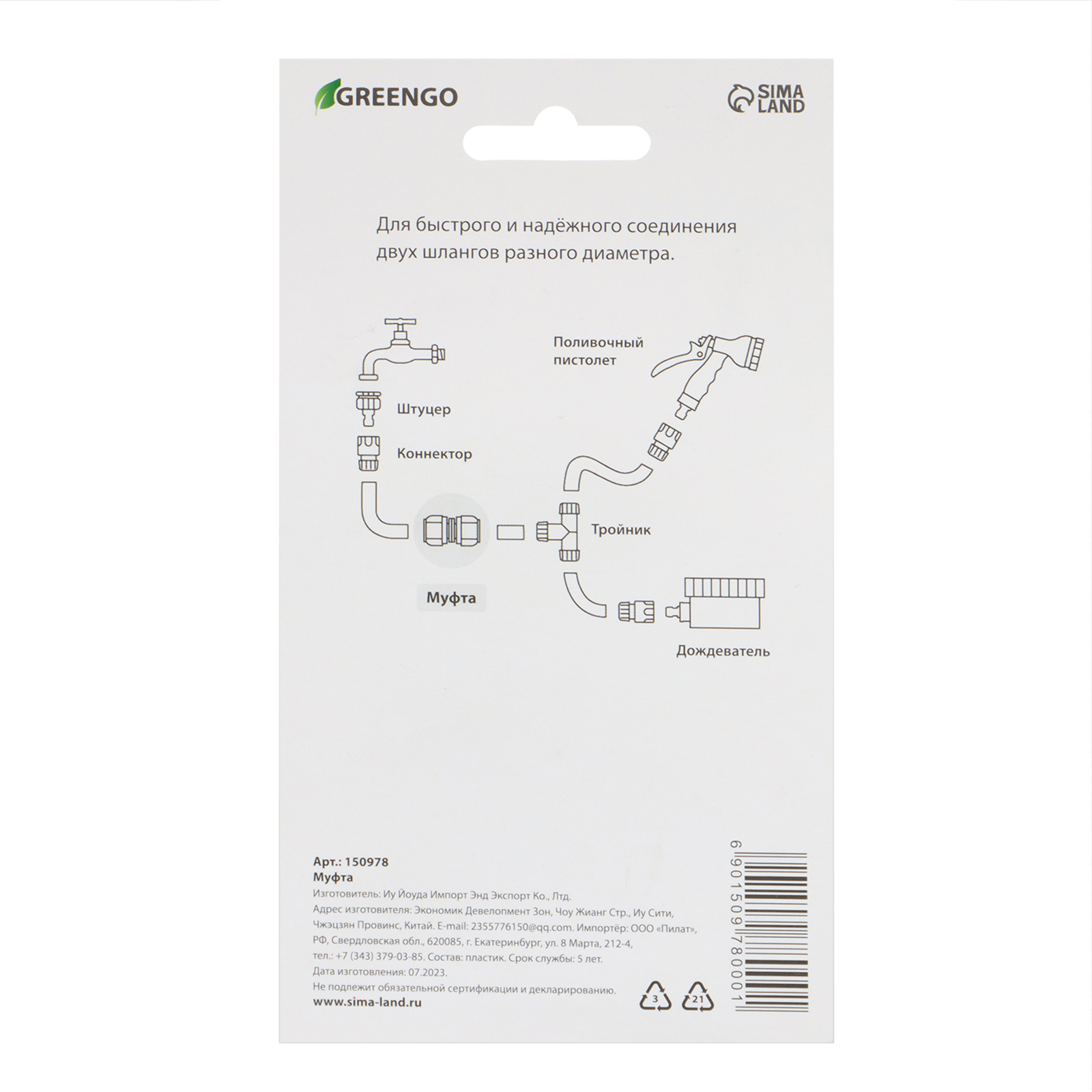 Муфта переходная, для шлангов 1/2 (12 мм) – 3/4 (19 мм), цанговое соединение, Abs-пластик, Greengo