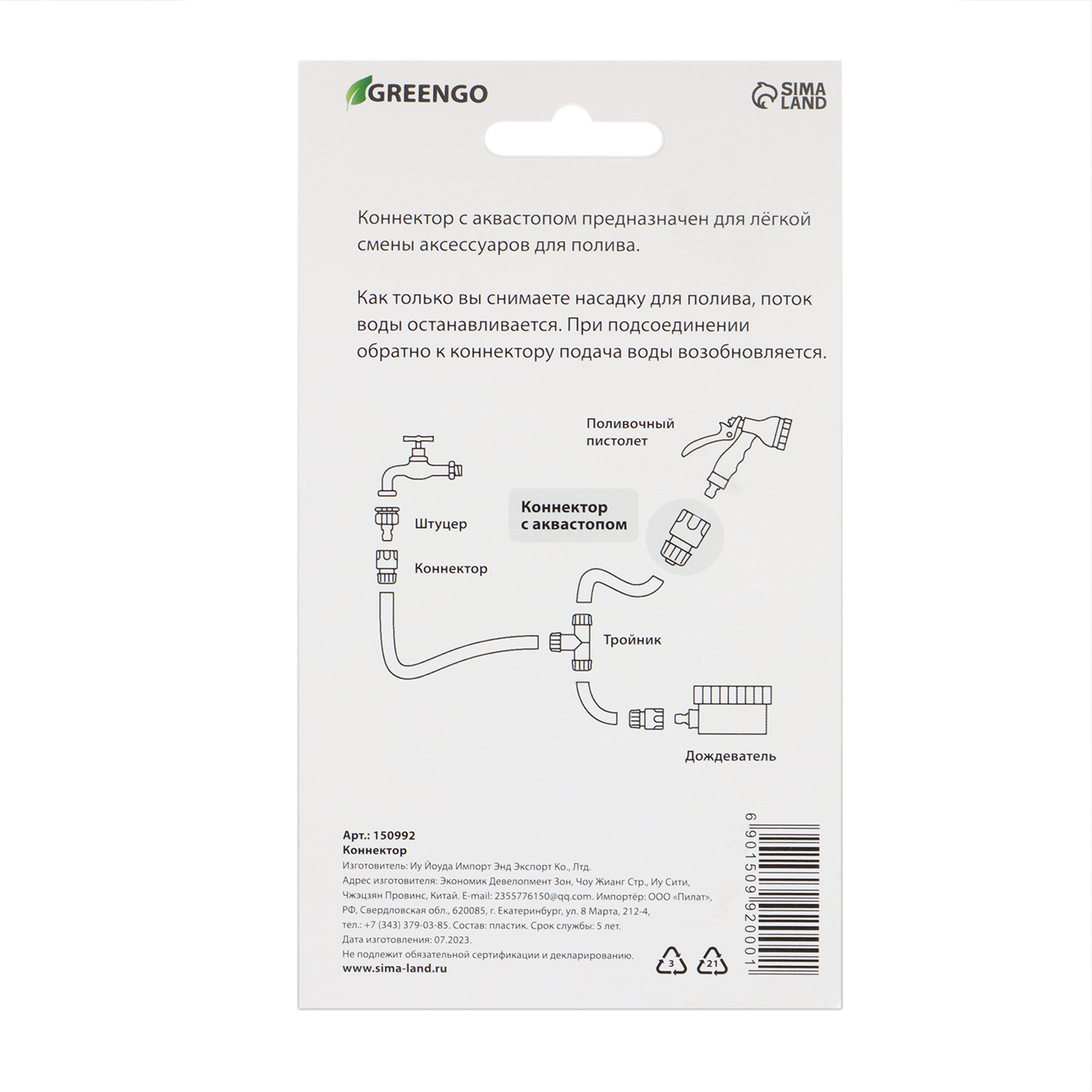Коннектор с аквастопом, 1/2 (12 мм), быстросъёмное соединение, рр-пластик, Greengo