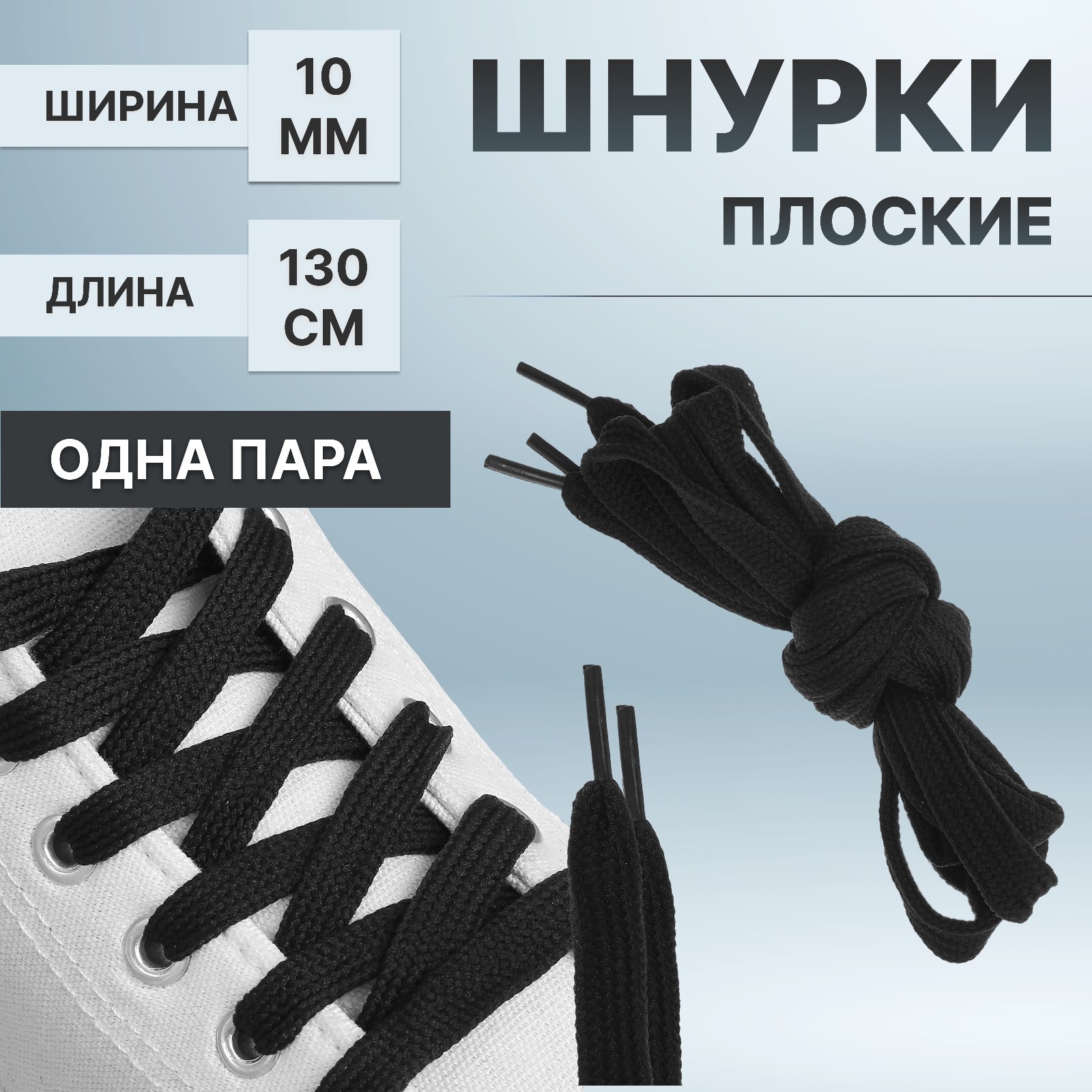 Шнурки для обуви, пара, плоские, 10 мм, 130 см, цвет чёрный