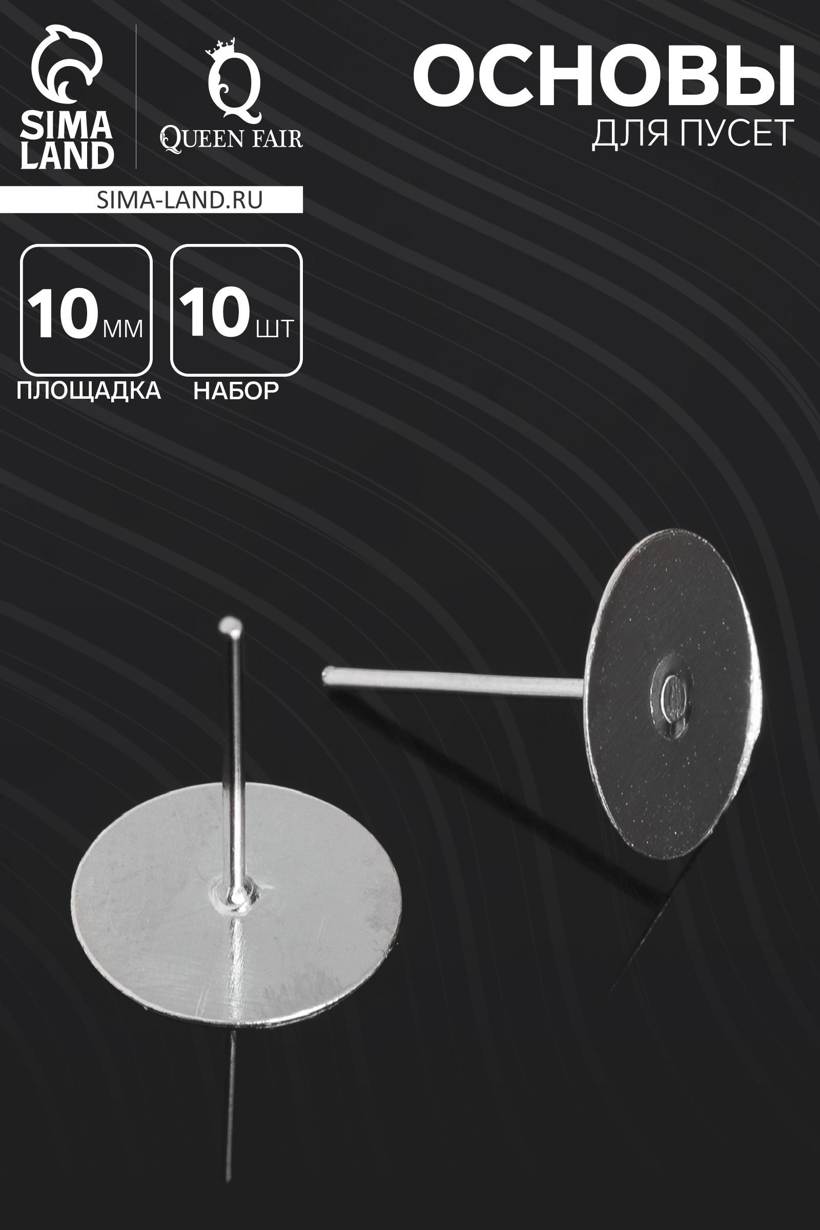 Основы для пусет, площадка 10 мм, пара, см-1110, (набор 10 шт.) цвет серебро. Серебристые основы для пусет с площадкой размером 10 10 мм обеспечивают прочную и надёжную базу для создания стильных и комфортных серёжек. В комплекте 10 штук, что позволяет реализовать множество дизайнерских задумок и обеспечить запас для мастерских проектов. Изготовленные из качественного металла с серебряным покрытием, эти пусеты отличаются стойкостью к износу и гипоаллергенностью, что делает их безопасными для ежедневного ношения. Площадка без вставок предоставляет широкие возможности для крепления декоративных элементов различных форм и материалов. Оптимальный размер площадки 10 мм: универсален для большинства декоративных элементов и украшений.Набор из 10 штук: удобство и экономия времени при создании сразу нескольких пар серёжек.Качественный металлический материал: гарантия долговечности и сохранения внешнего вида изделий.Серебристое покрытие: придаёт аксессуарам благородный и современный вид.Гипоаллергенность: подходит для чувствительной кожи, обеспечивая комфорт при носке.Этот набор станет надёжным помощником для мастеров и любителей украшений, стремящихся создавать качественные и стильные изделия. Благодаря удобству использования и универсальному дизайну, основы для пусет позволяют воплотить в жизнь самые смелые творческие идеи. Набор:Да|Цвет:Серебристый|Длина, см:1|В наборе, шт.:2|Материал:Металл|Цвет фурнитуры:Серебряный|Вставка/Подвеска:Без вставок|Размер площадки, мм:10 х 10|Вид:Пусеты|Страна:Китай  развернуть описание ▼