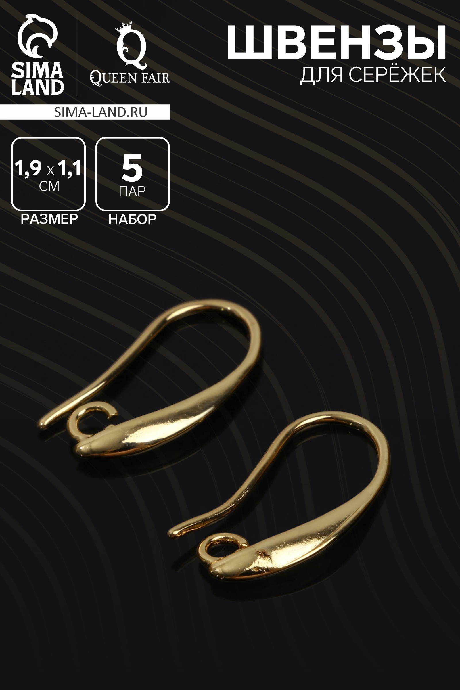 Швензы для сережек-крючки см-1111-1, (набор 5 пар), цвет золото