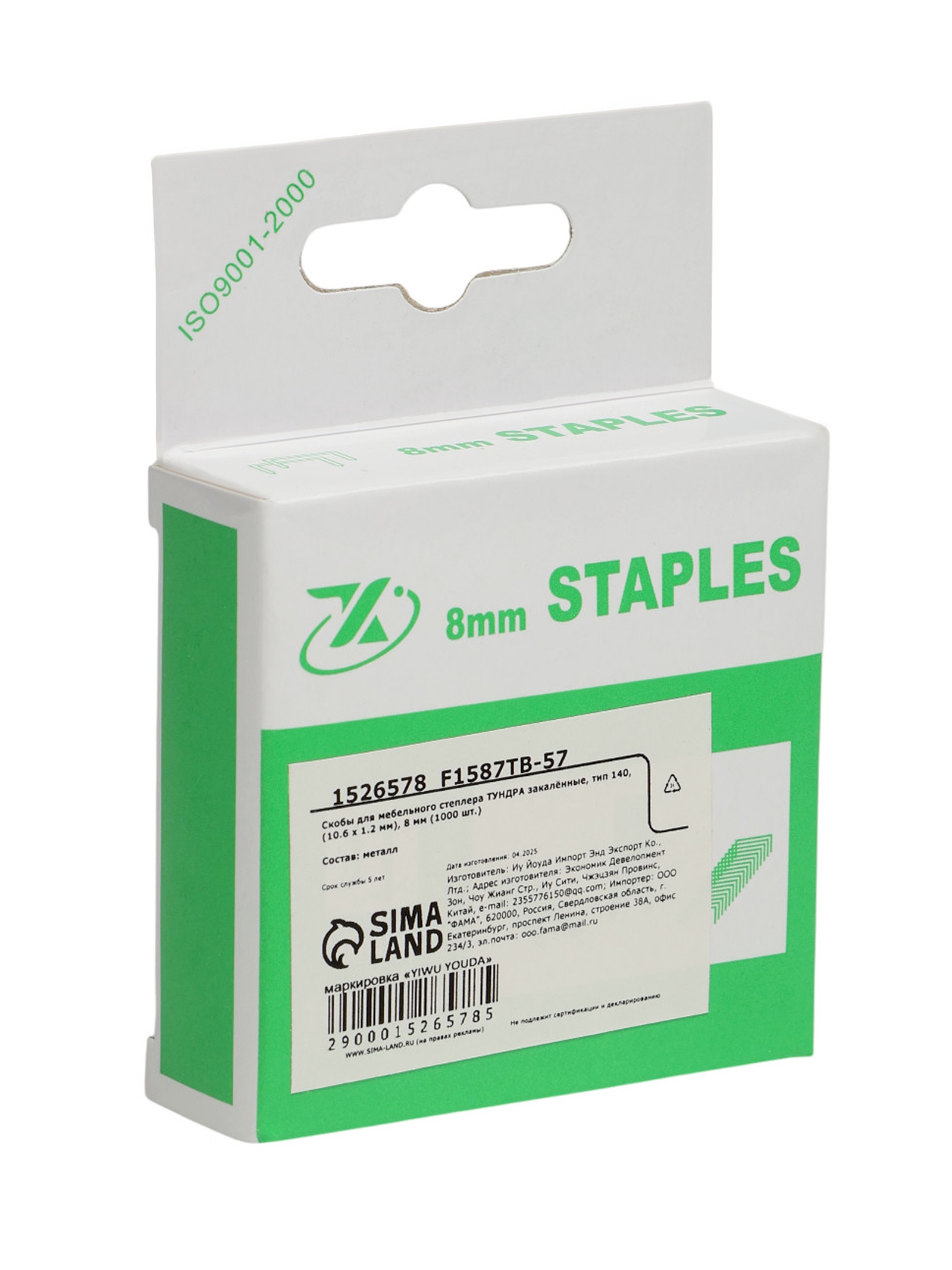 Скобы для мебельного степлера тундра, закалённые, тип 140, 8 мм, 1000 шт.