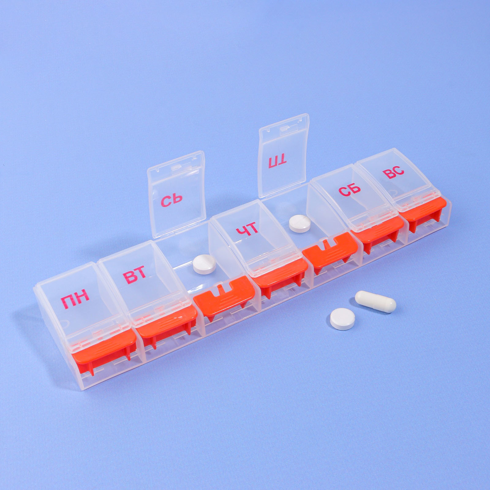 Таблетница «неделька», русские буквы, 7 секций, цвет микс