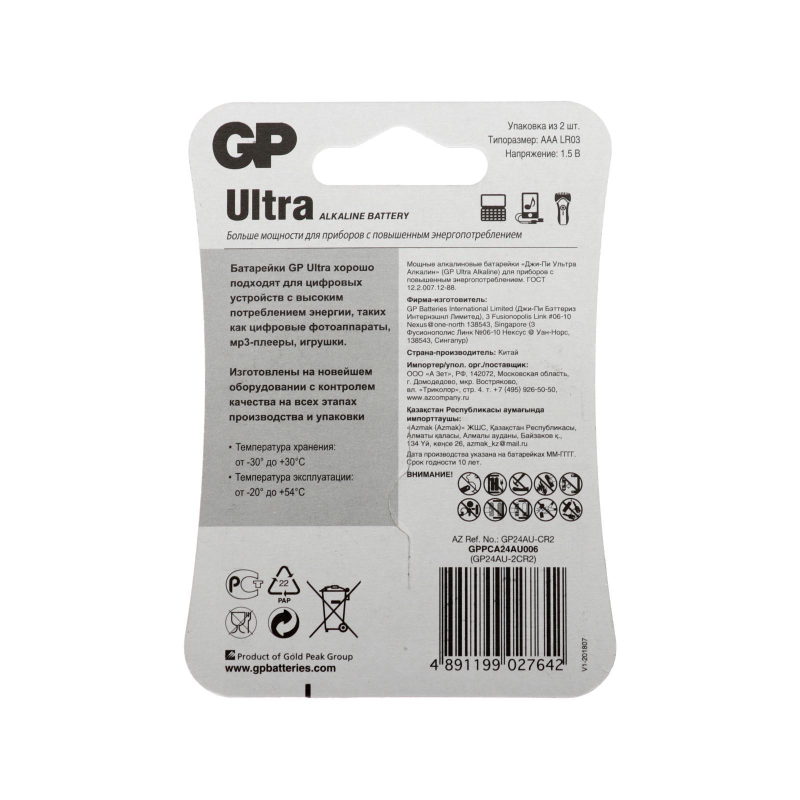 Батарейка алкалиновая Gp Ultra, Aaa, Lr03-2bl, 1.5в, блистер, 2 шт.