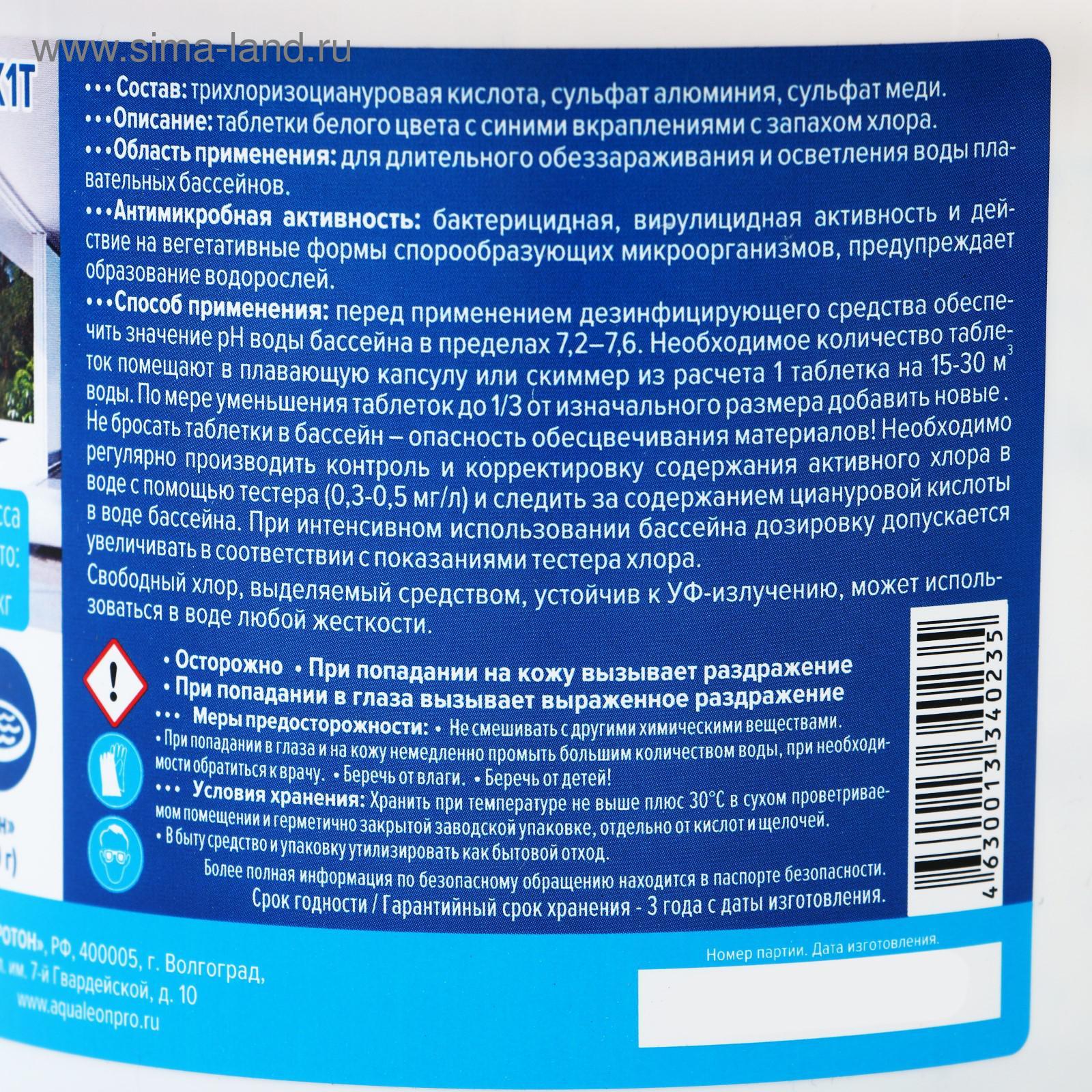 Медленный стабилизированный хлор Aqualeon комплексный таб. 200 гр., 1 кг
