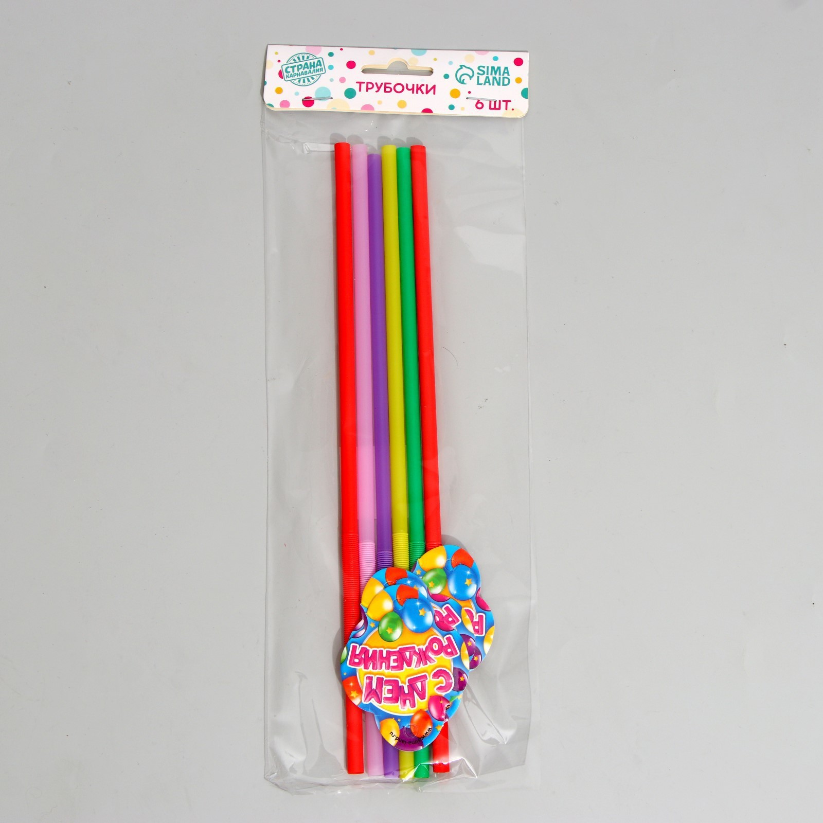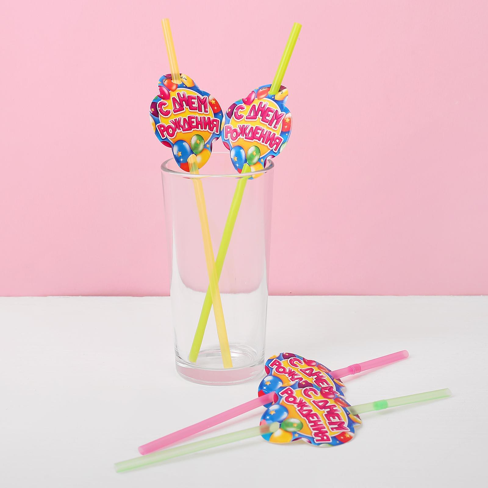 Трубочки для коктейля «с днём рождения», шарики, набор 6 шт.