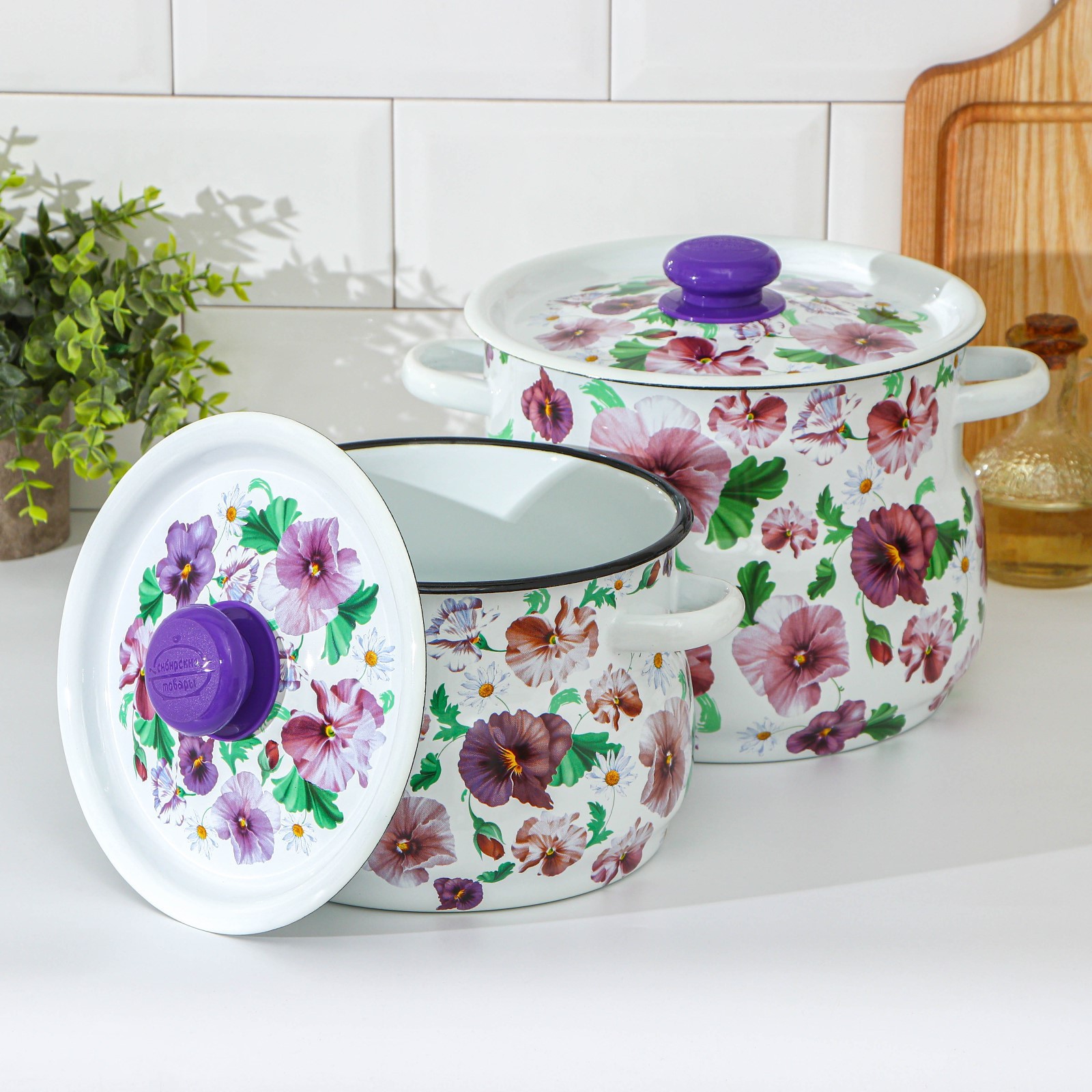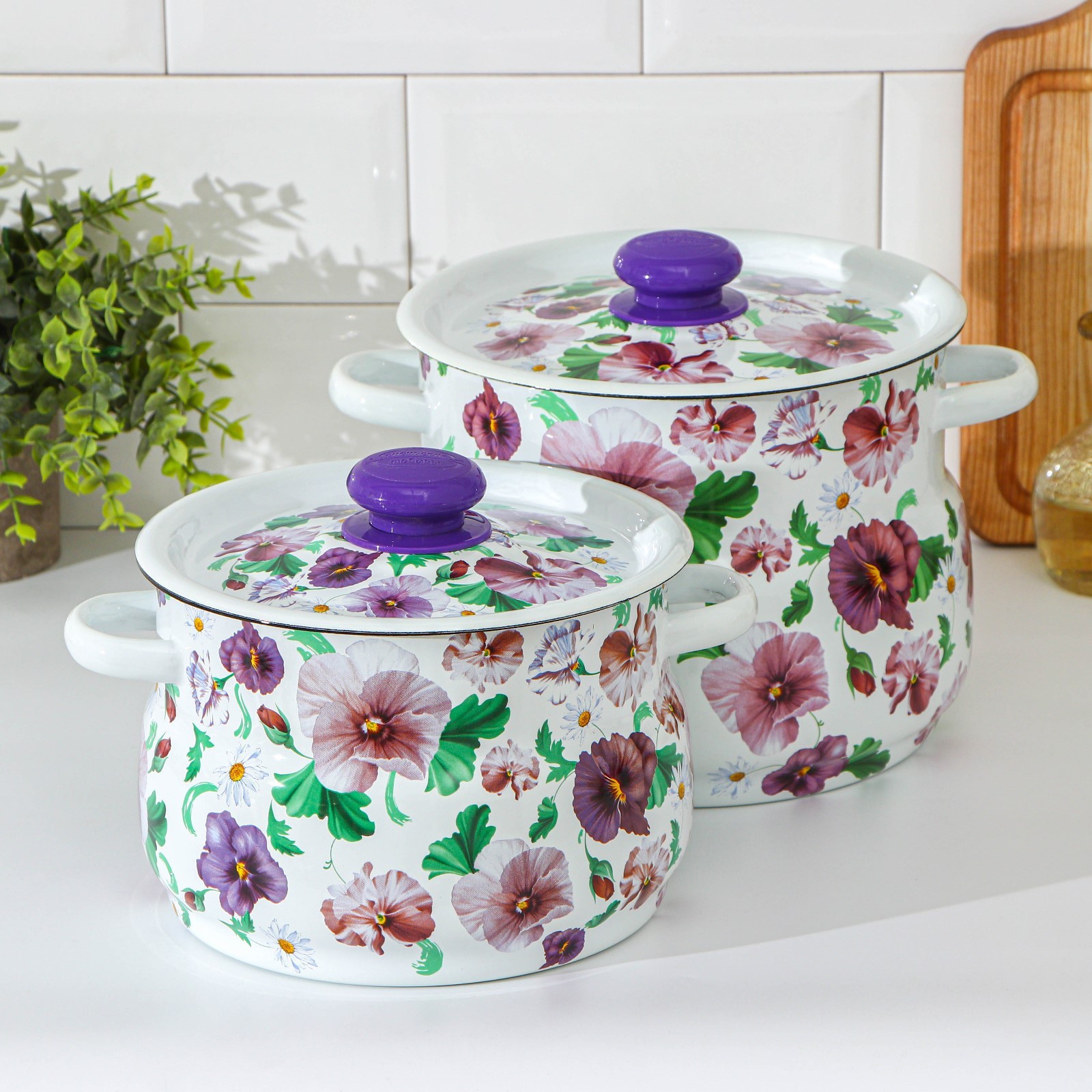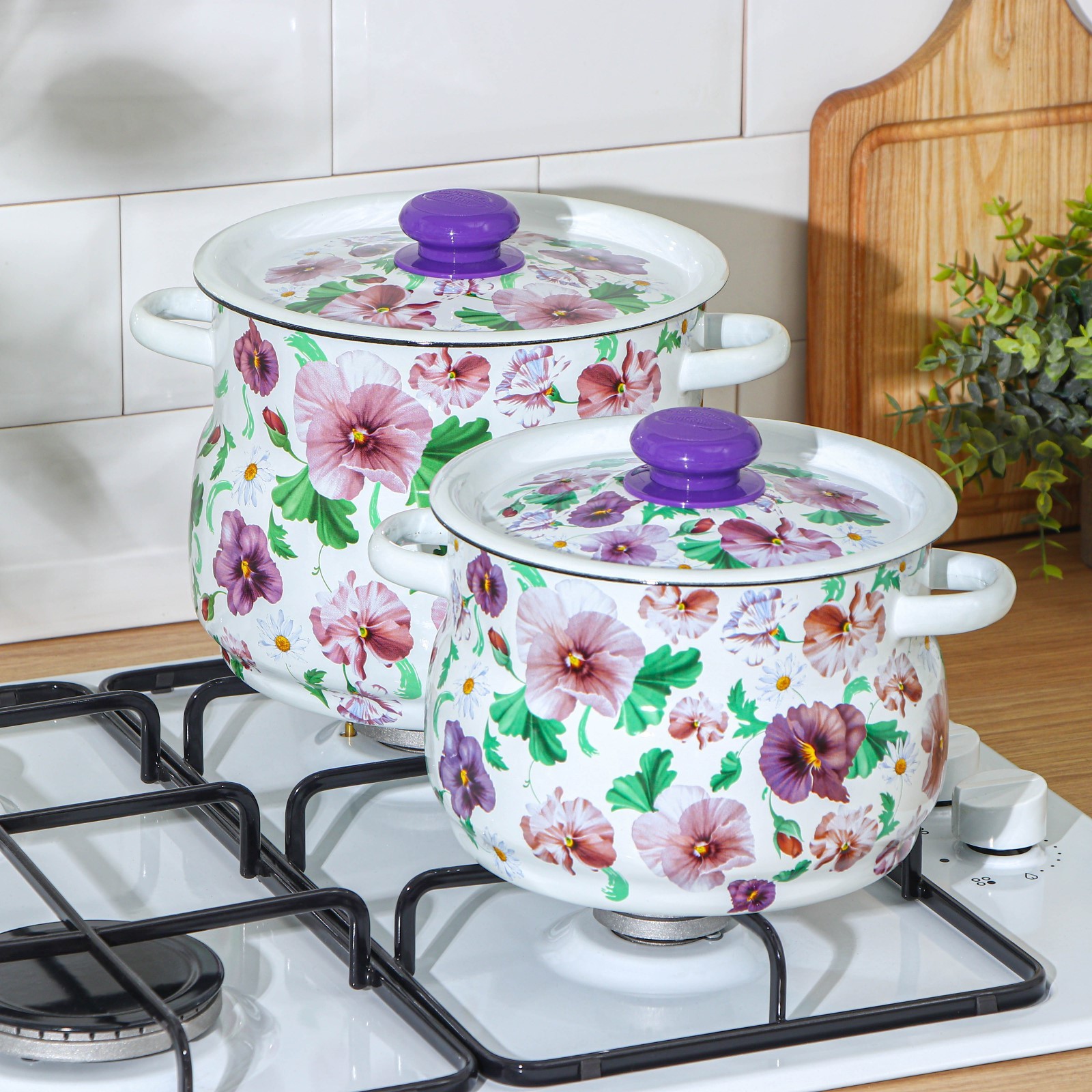 Набор кастрюль «анютины глазки», 2 предмета: 4 л, 5,5 л, эмалированные крышки, индукция