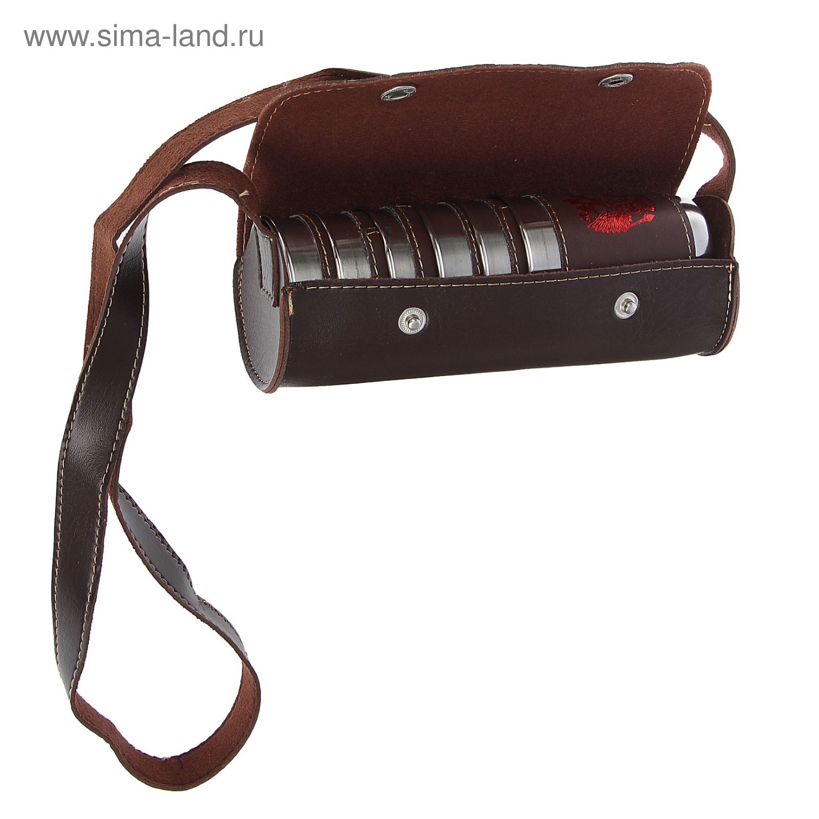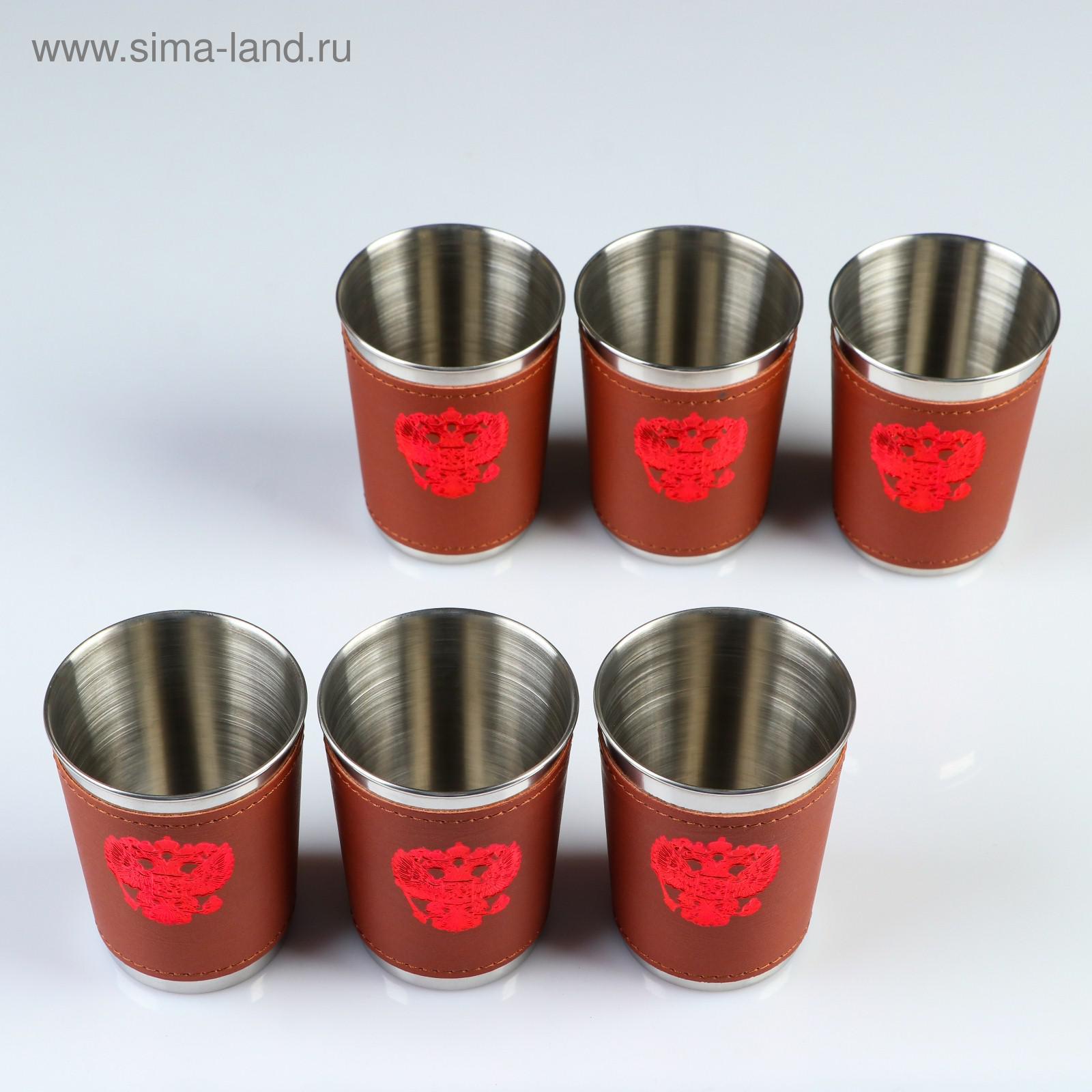 Стопки в чехле «герб»: нержавеющая сталь, набор 6 шт. х 100 мл. Набор стопок из 6 штук по 100 мл из пищевой нержавеющей стали с удобным и компактным чехлом, который имеет хлястик для удобного крепления и носки на ремне, что отлично подходит для любителей охоты, рыбалки и людей любящих вылазки на природу, в горы, путешествия. Легкие и компактные, удобно брать с собой на отдых. Супер прочные и стильные, эти стопки изготовлены из высокого качества 304 нержавеющей стали, оплетка стопок выполнена из эко кожи, которые не только красиво смотрятся, но и обеспечивают долгий срок службы изделия. Они легко моются и подходят для повседневного использования. Отлично заменят стеклянные рюмки и бокалы, смотрятся эффектно и стильно. Стопки не слишком высокие, удобно помещаются в руке и имеют оптимальный объем 100 мл. Это подарочный набор на все случаи жизни, который станет прекрасным подарком на новый год папе или маме, бабушке или дедушке, а еще коллеге или начальнику боссу на день рождения или 23 февраля, 9 мая, 8 марта, юбилей. Этот набор шоттов удивит и порадует каждого получателя. Рюмки подойдут для водки, самогона, коньяка, виски, рома, ликера и другого алкоголя. Также допустимо использовать для безалкогольных напитков, таких как сок, вода или морс. Небольшие шоты идеальны для коктейлей, текилы или настоек. Набор:Да|Цвет:Серебристый|Цвет:Коричневый|В наборе, шт.:6|Объём, мл:100|Рисунок:Да|Материал:Металл|Материал:Искусственная кожа|Особенности:Без особенностей|Страна:Китай  развернуть описание ▼