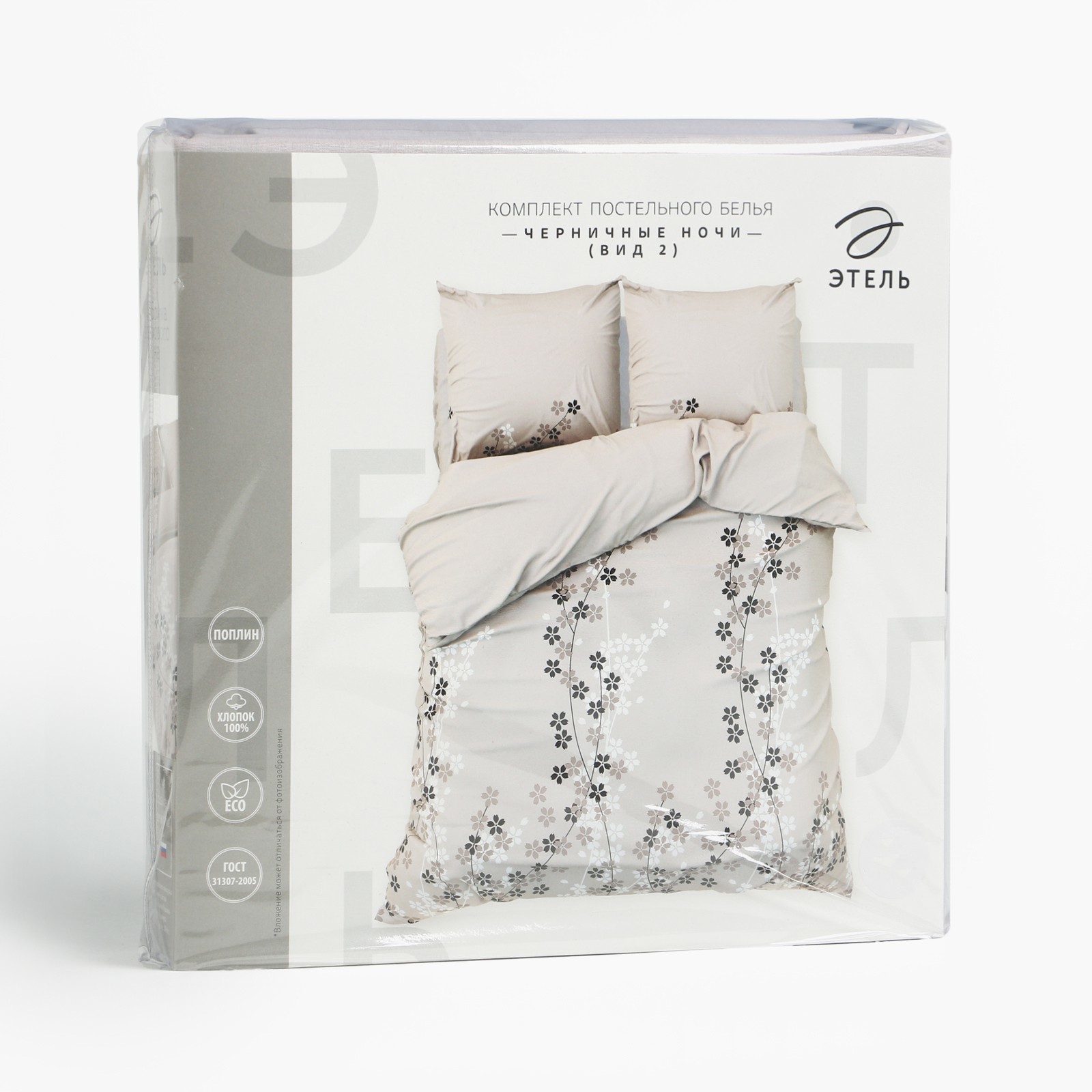 Постельное бельё евро «этель. черничные ночи (вид 2)», поплин. Постельное бельё «Этель: поплин» создано специально для тех, кто привык окружать себя комфортом и стремится внести в свою жизнь как можно больше ярких красок. Чем хорош поплинx Данный материал — удивительно мягкая, тонкая и одновременно очень прочная ткань. Он отличается благородным матовым блеском, который достигается за счёт особой технологии производства: в качестве основы выступают тончайшие хлопковые нити, а горизонтальные берутся в два раза толще. Постельное бельё из поплина отлично поддаётся окрашиванию, а потому сохраняет насыщенность цвета долгое время. Кроме того, оно хорошо пропускает воздух, легко стирается и разглаживается. Цвет:Серый|Размер наволочки, см:70 х 70|Ткань:Поплин|Плотность, г/м :125|Размер:Евро|На резинке:Нет|Тематика:Цветочно-растительная|Вид упаковки:PVC-пакет|Декоративные элементы:Без элементов|Рекомендации по уходу:Не отбеливать|Рекомендации по уходу:Деликатная стирка при 40 °С|Рекомендации по уходу:Бережный режим глажки|Рекомендации по уходу:Барабанная сушка при низкой температуре|Состав ткани:Хлопок|Количество наволочек:2|Режим стирки:При 30 градусах|Отделка:Без отделки|Вид печати:Пигментная|Размер пододеяльника, см:200 х 215|Размер простыни, см:240 х 220|Простыня в комплекте:Да|Особенности простыни:Стандартная|Вид застёжки наволочки:Клапан|Вид застёжки пододеяльника:Без застёжки|Страна:Россия  развернуть описание ▼