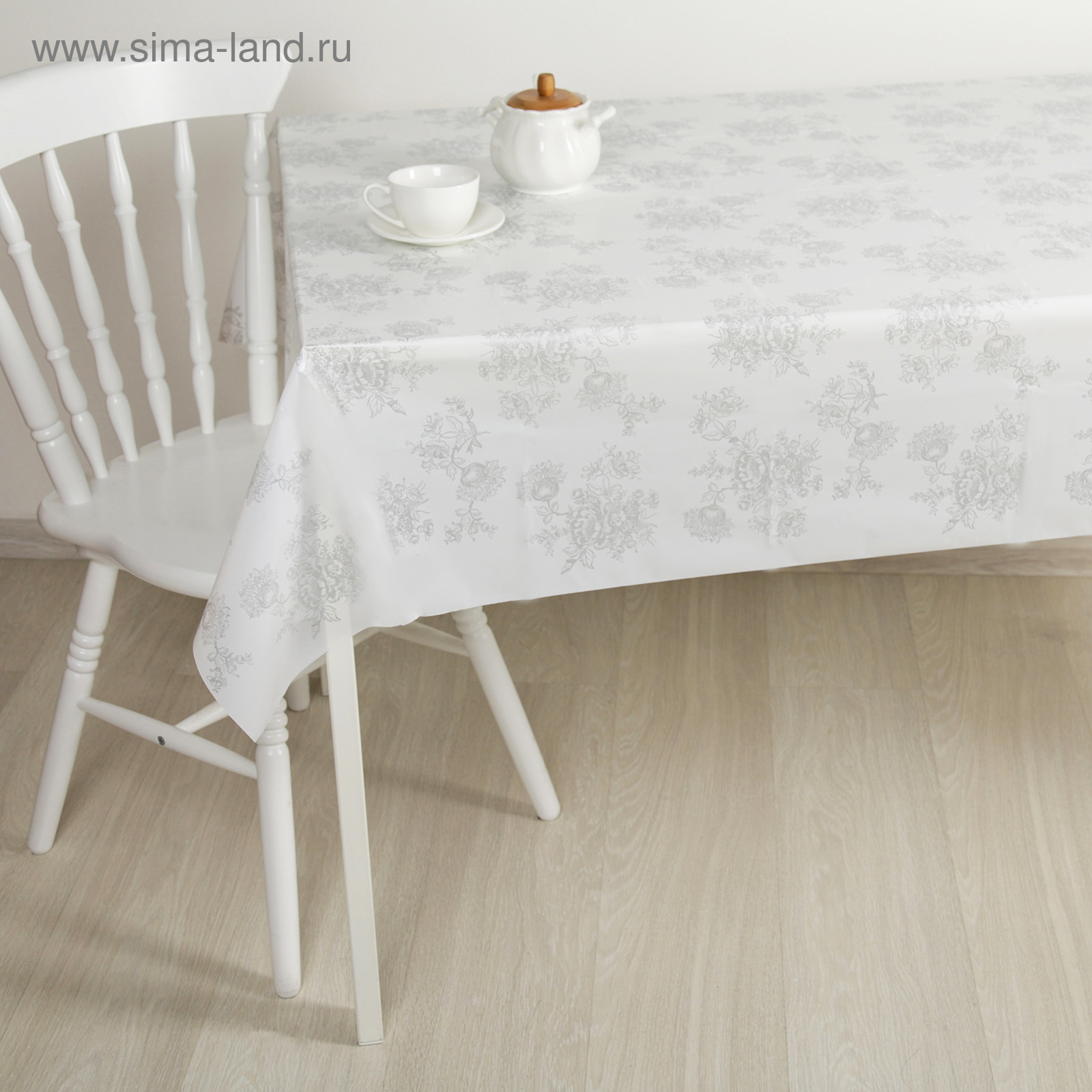Скатерть без основы многоразовая «гжель», 120x180 см, цвет серебряный