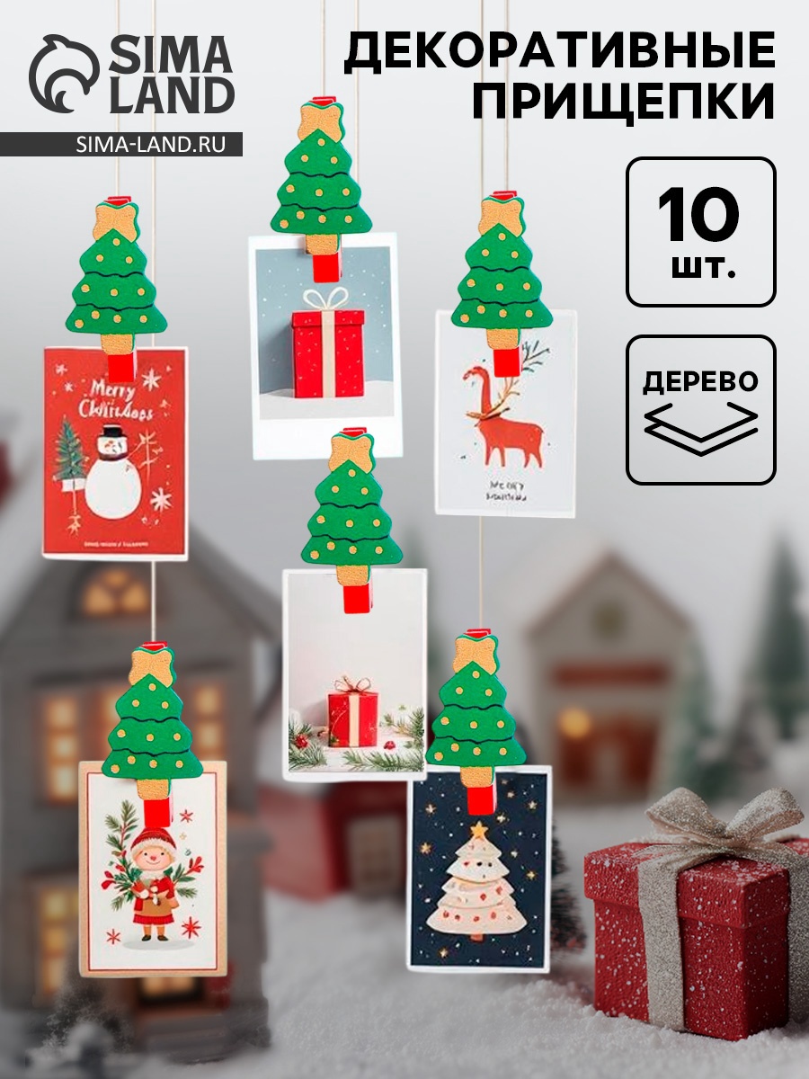 Прищепки декоративные новогодние «ёлочка», набор 10 шт.