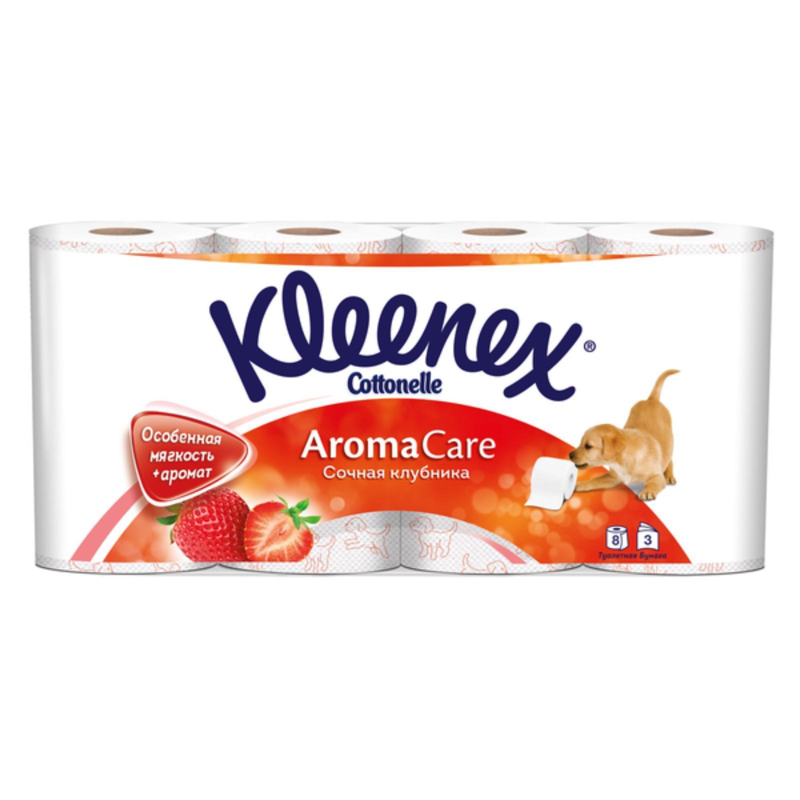 Туалетная бумага Kleenex Aroma Care «сочная клубника», 3 слоя, 8 рулона