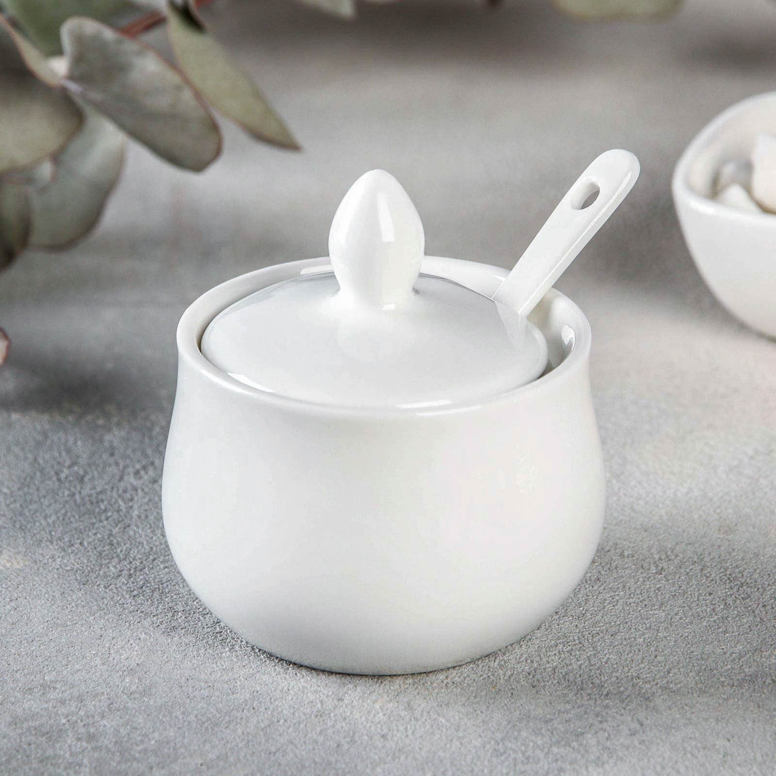 Соусник фарфоровый с ложкой Wilmax, 130 мл, D=7 см, цвет белый