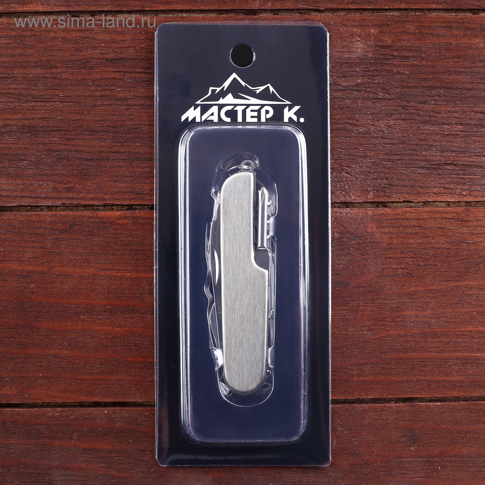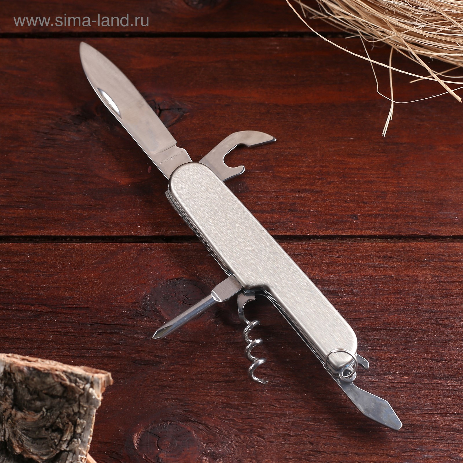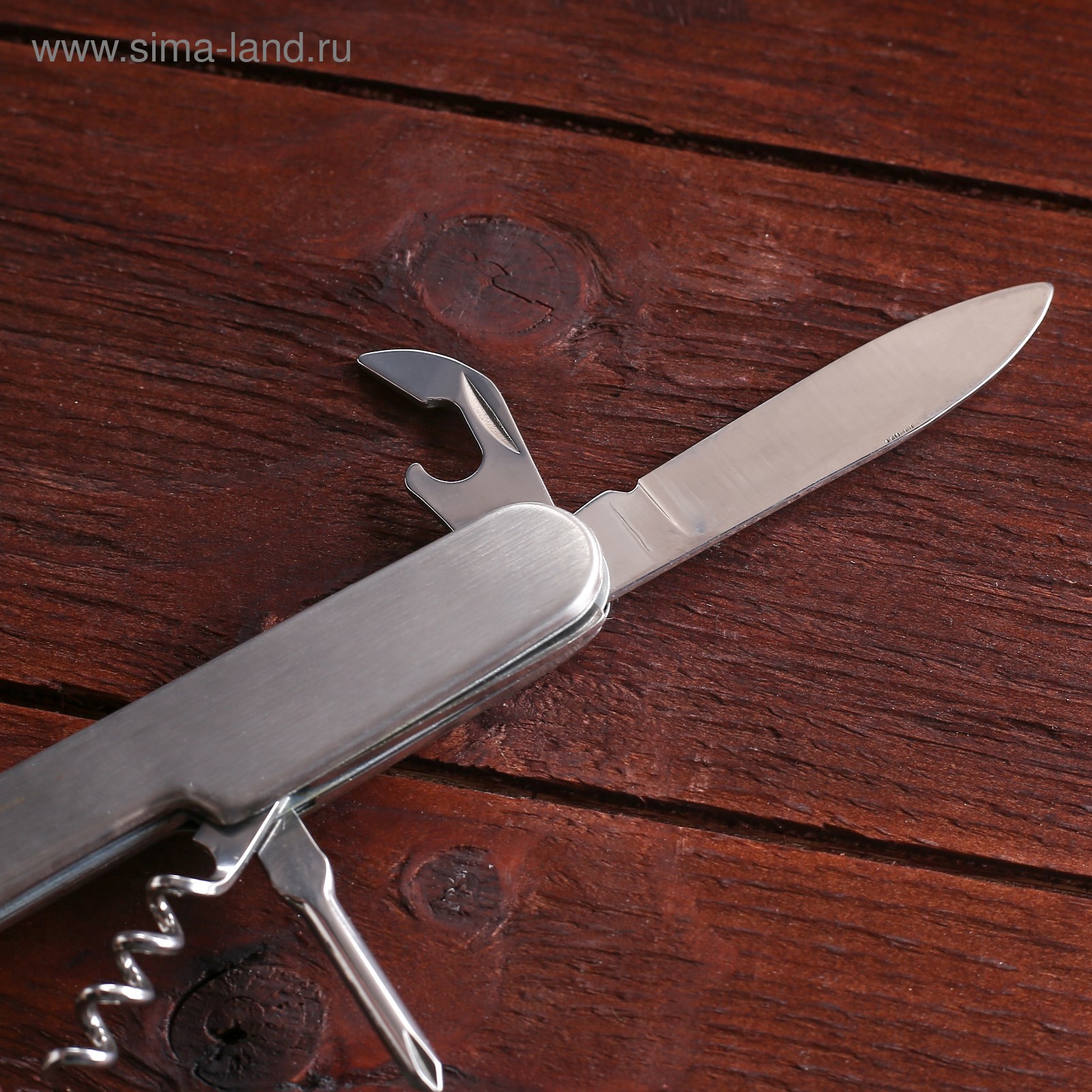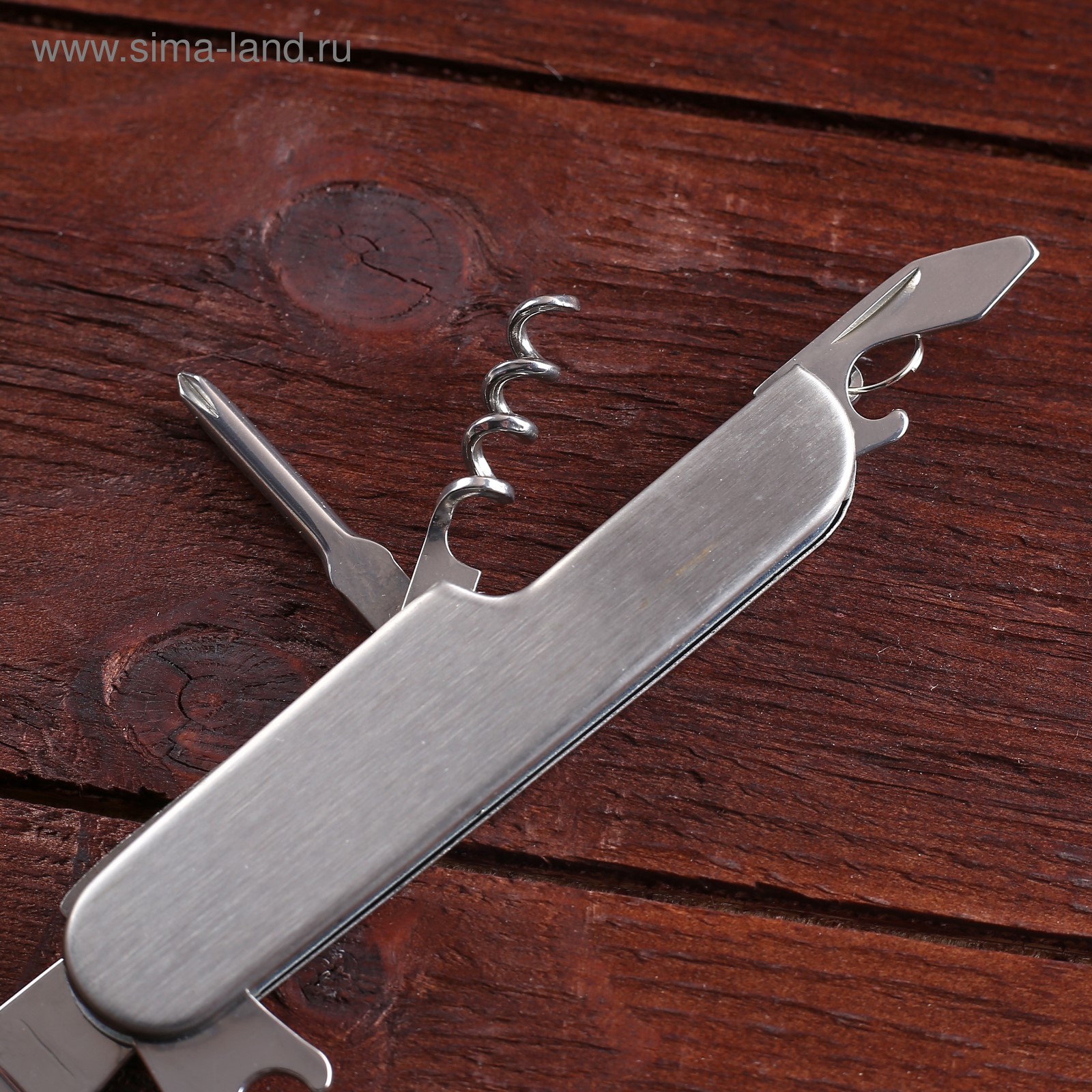 Нож швейцарский под гравировку 6в1. Цвет: Серебристый Количество функций: 5 Длина лезвия, см: 6.2 Материал ручки: Металл