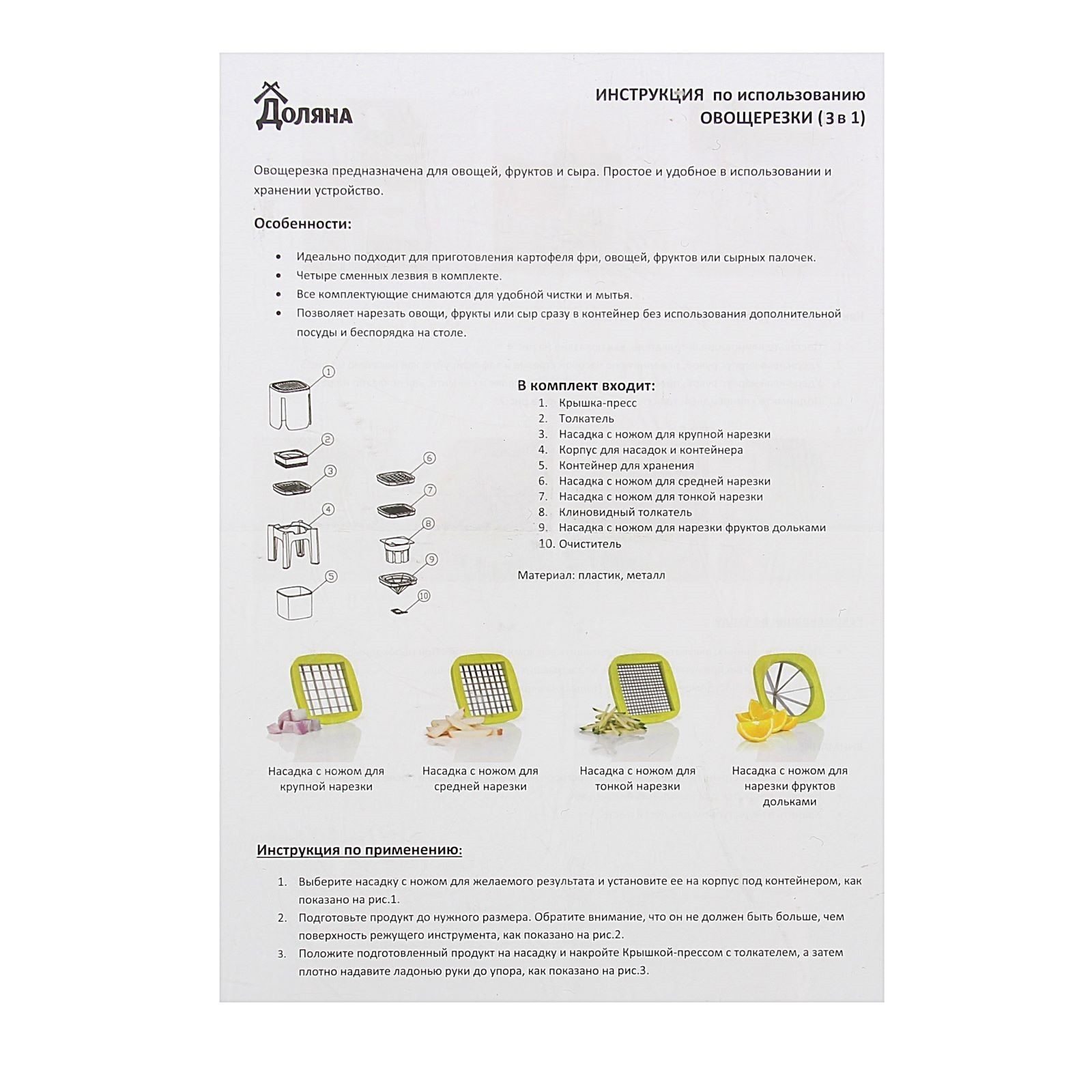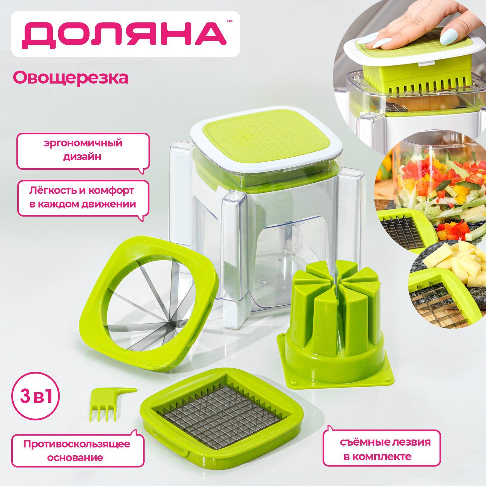 Овощерезка универсальная с контейнером доляна, 3 сменные насадки и пушер, 14,5x14,5x21 см, цвет бело-зелёный