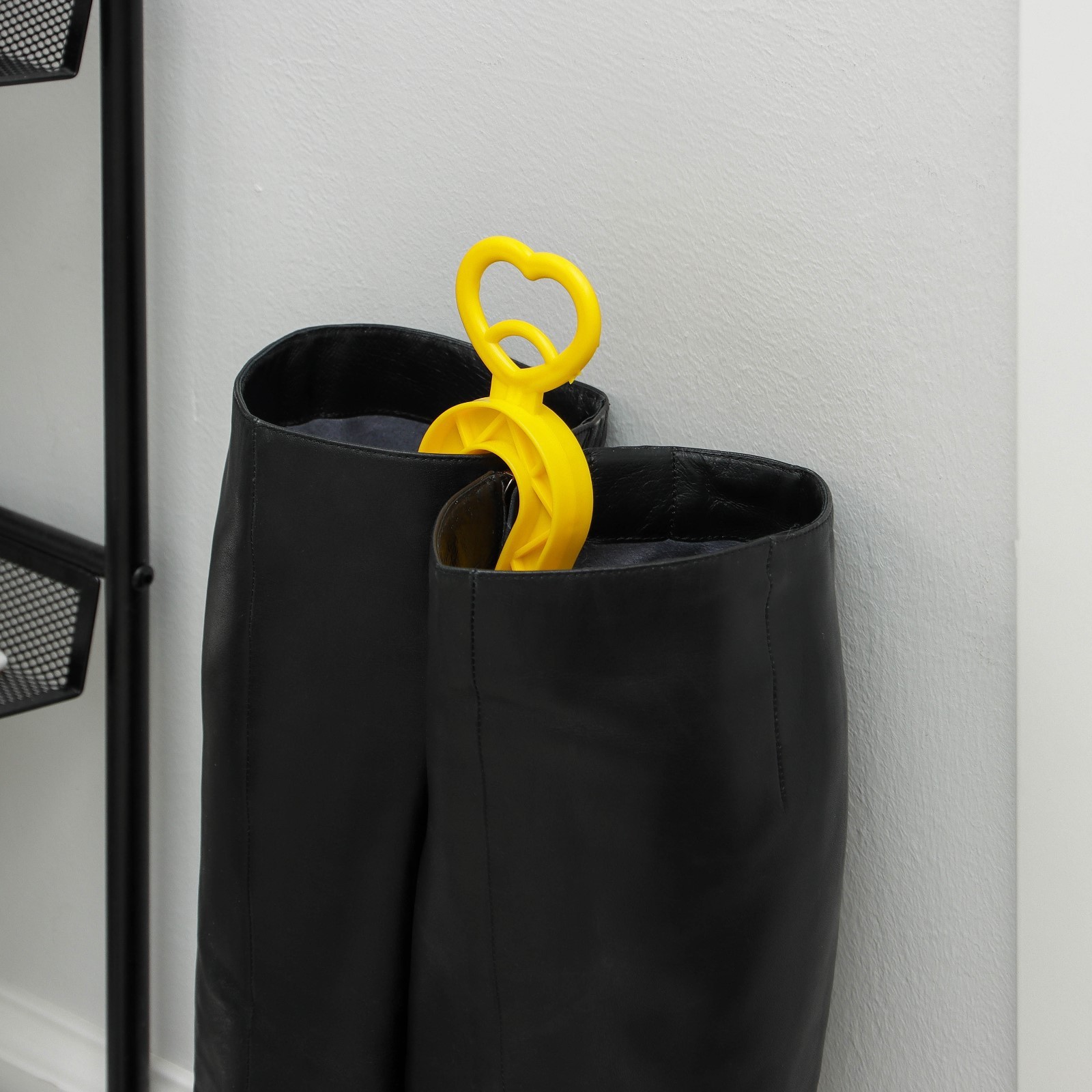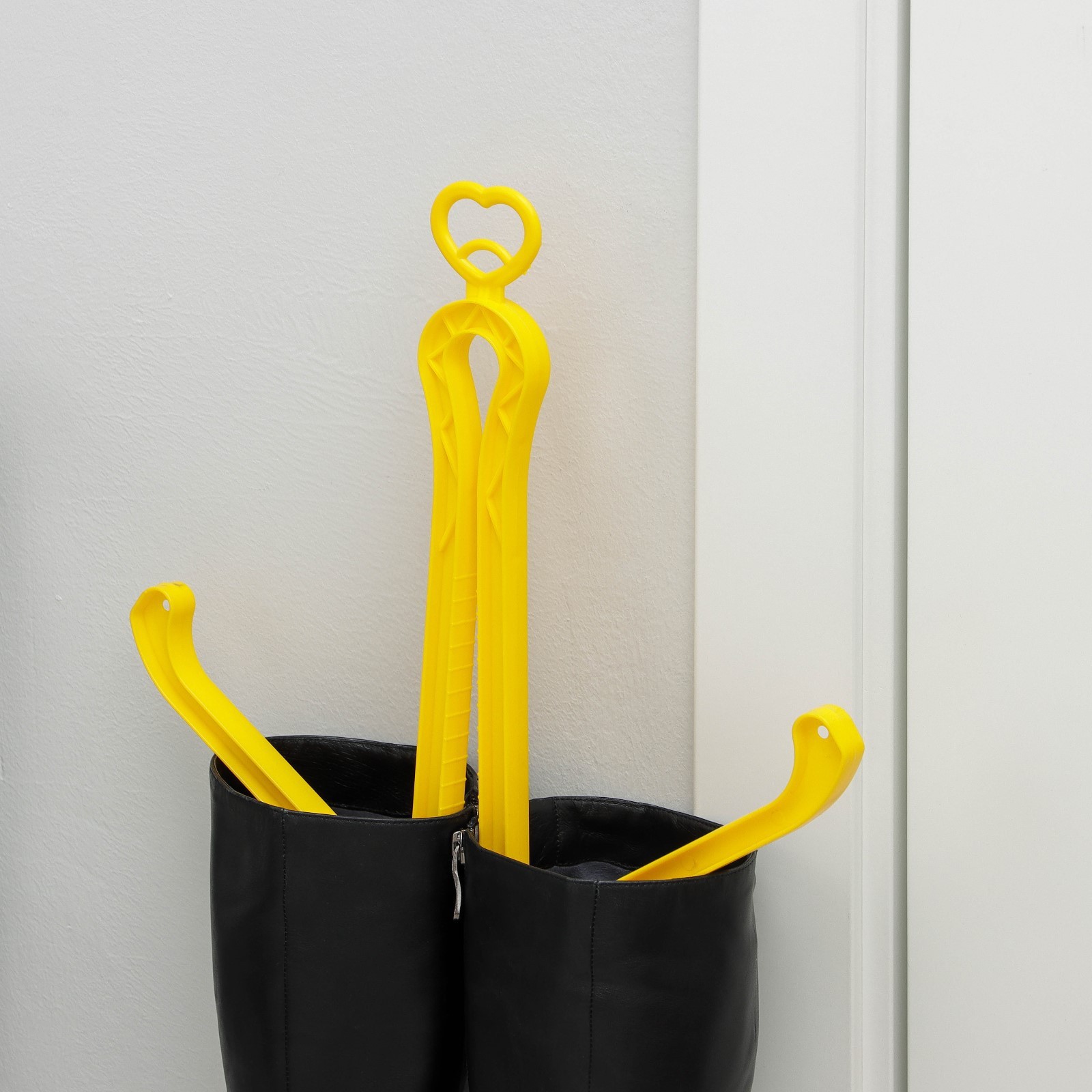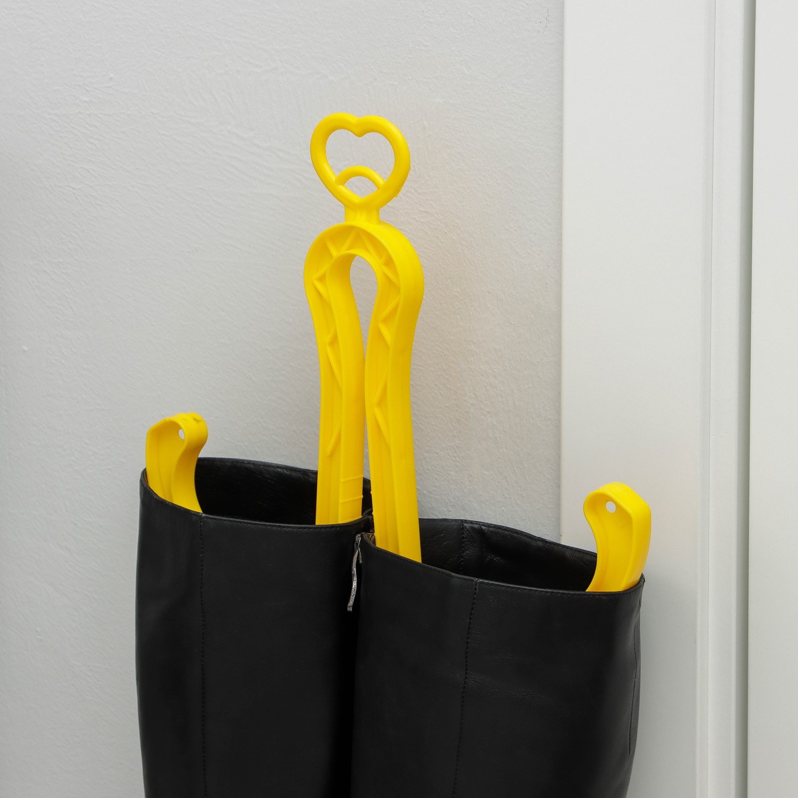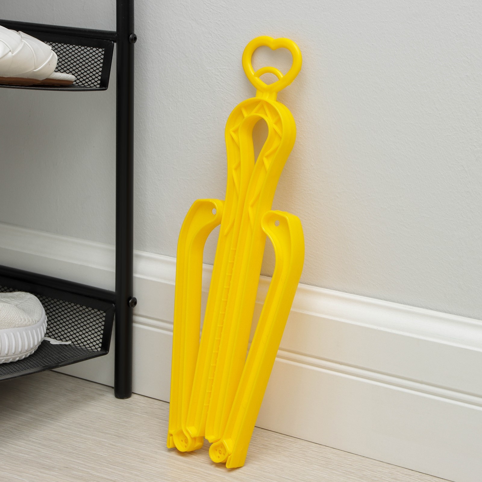 Держатель для голенищ обуви складной, 33(50,5)x7,5 см, цвет микс. Каждая девушка твёрдо уверена: чем больше разнообразной обуви в доме, тем лучше! Но как быть, если обуви много, а места мало? На помощь приходит держатель для голенищ ! Этот, казалось бы, простой предмет выполняет сразу несколько важных функций! Организуйте обувь, собрав её по парам. Держатель надёжно соединит между собой два сапога, не дав им коварно расползтись по всей прихожей. Предохраните обувь от деформации. Жёсткий держатель не даст голенищам храниться в сложенном виде, а значит, можно попрощаться с заломами и изгибами. Освободите пространство и наведите порядок! Небольшая петелька на верхней части держателя позволит подвесить обувную пару в любое удобное место. Приобретая держатель для голенищ, Вы освобождаете место для новых удачных покупок! Цвет: МИКС Длина, см: 33 Длина, см: 50 Материал: Пластик  развернуть описание ▼