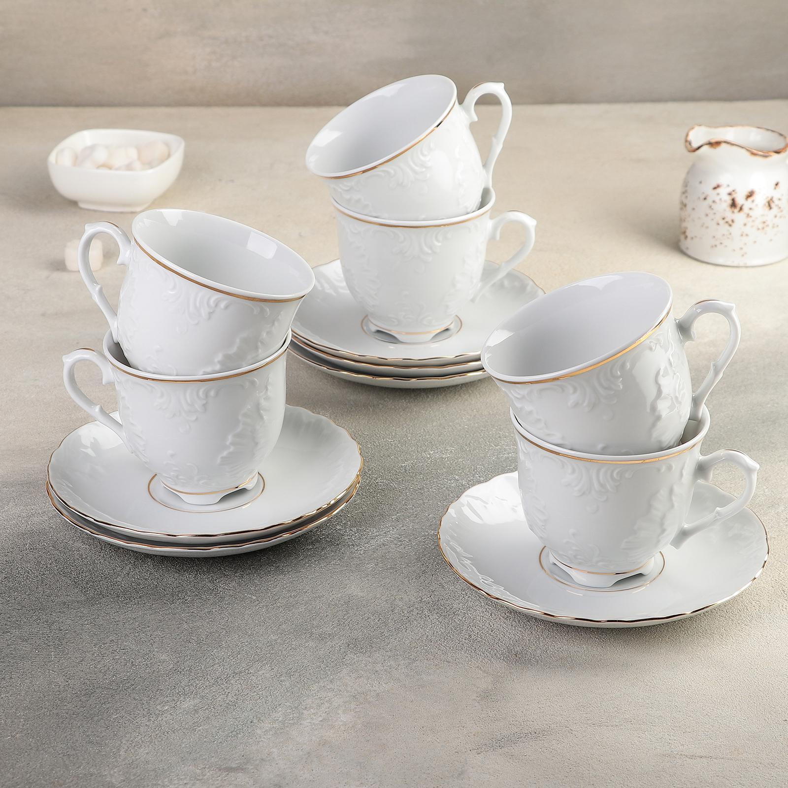 Сервиз чайный на 6 персон «rococo золото», 12 предметов: чашка 250 мл, блюдце
