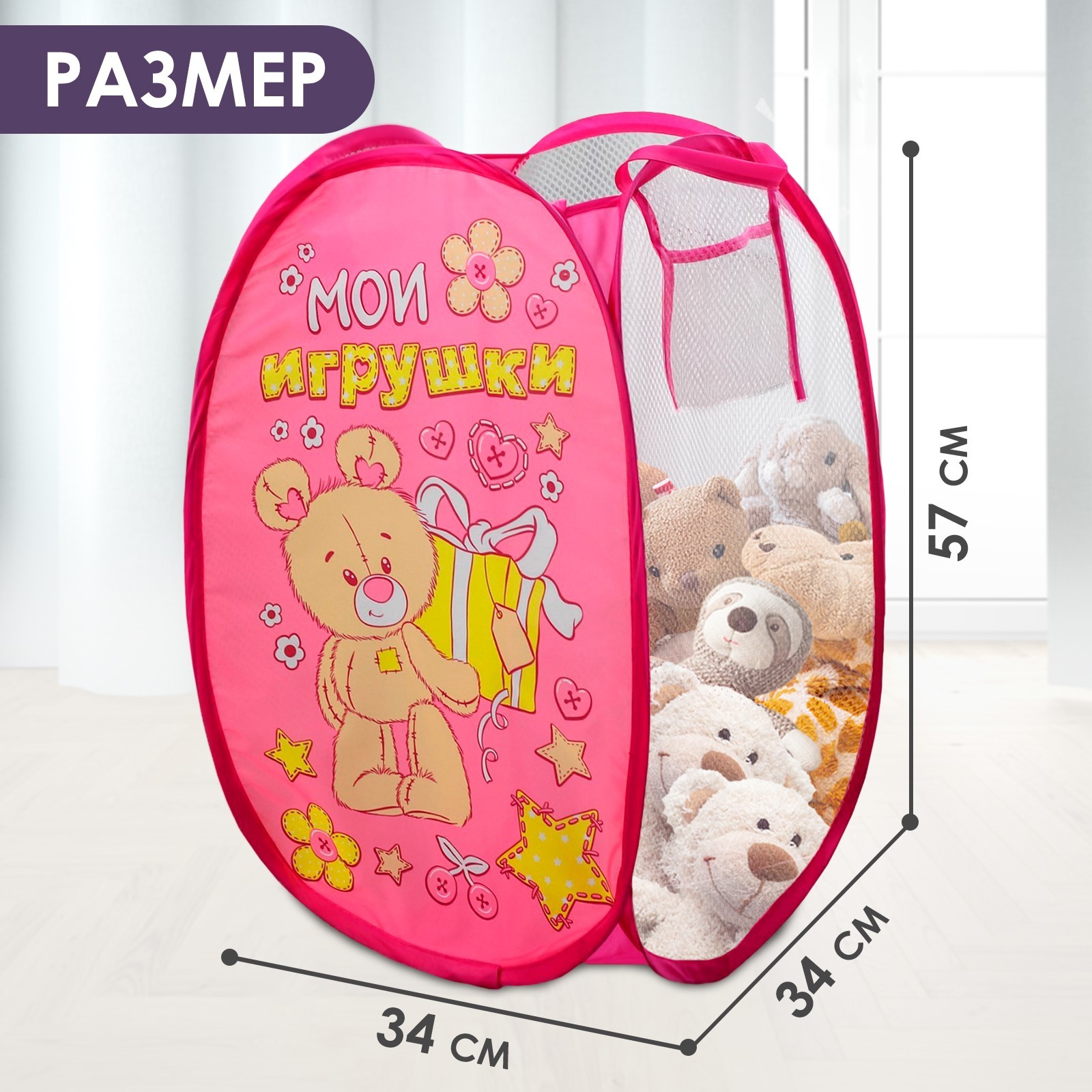 Корзина для хранения игрушек «мои игрушки» с ручками, 34х34х57 см