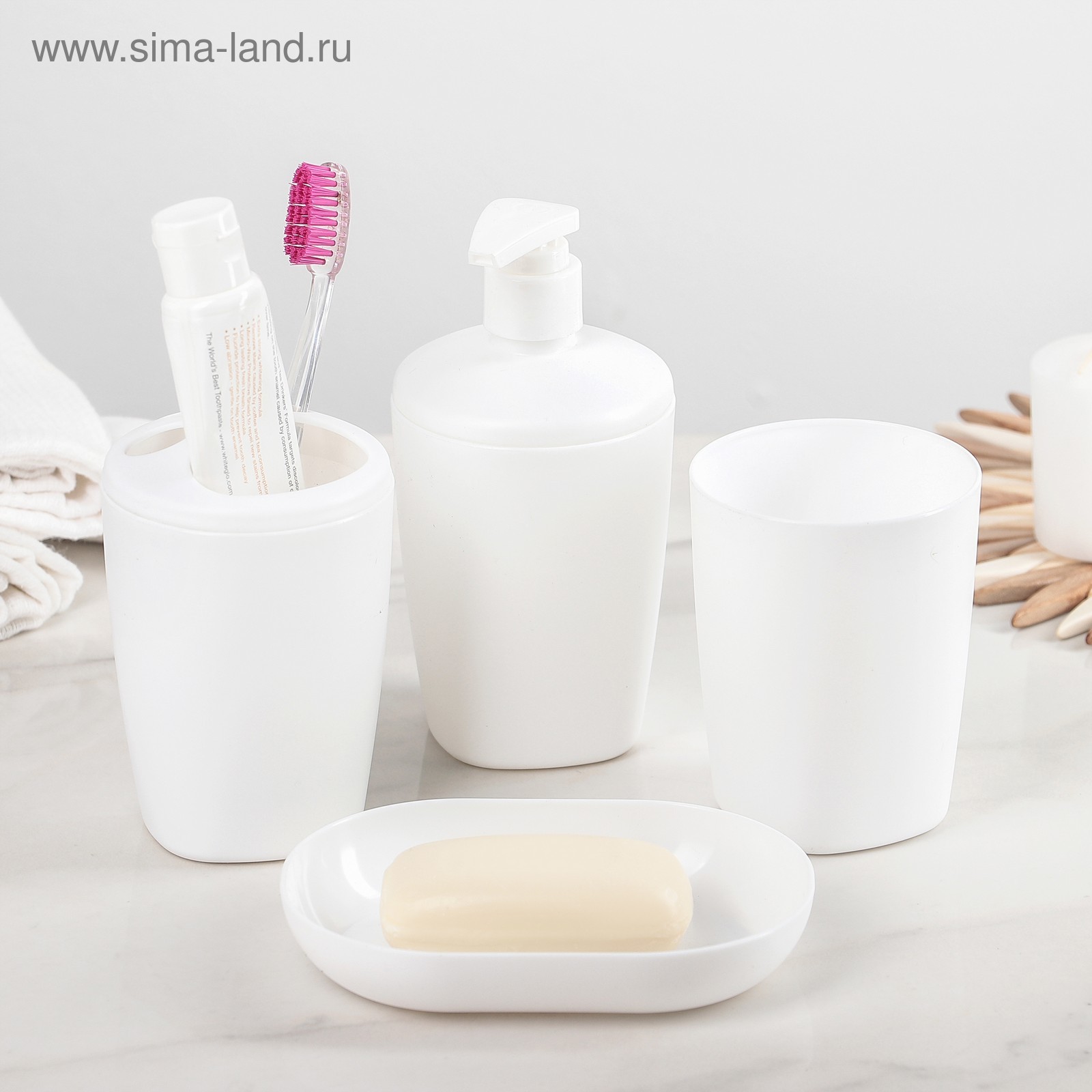 Набор аксессуаров для ванной комнаты Aqua, 4 предмета (дозатор, мыльница, 2 стакана), цвет белый