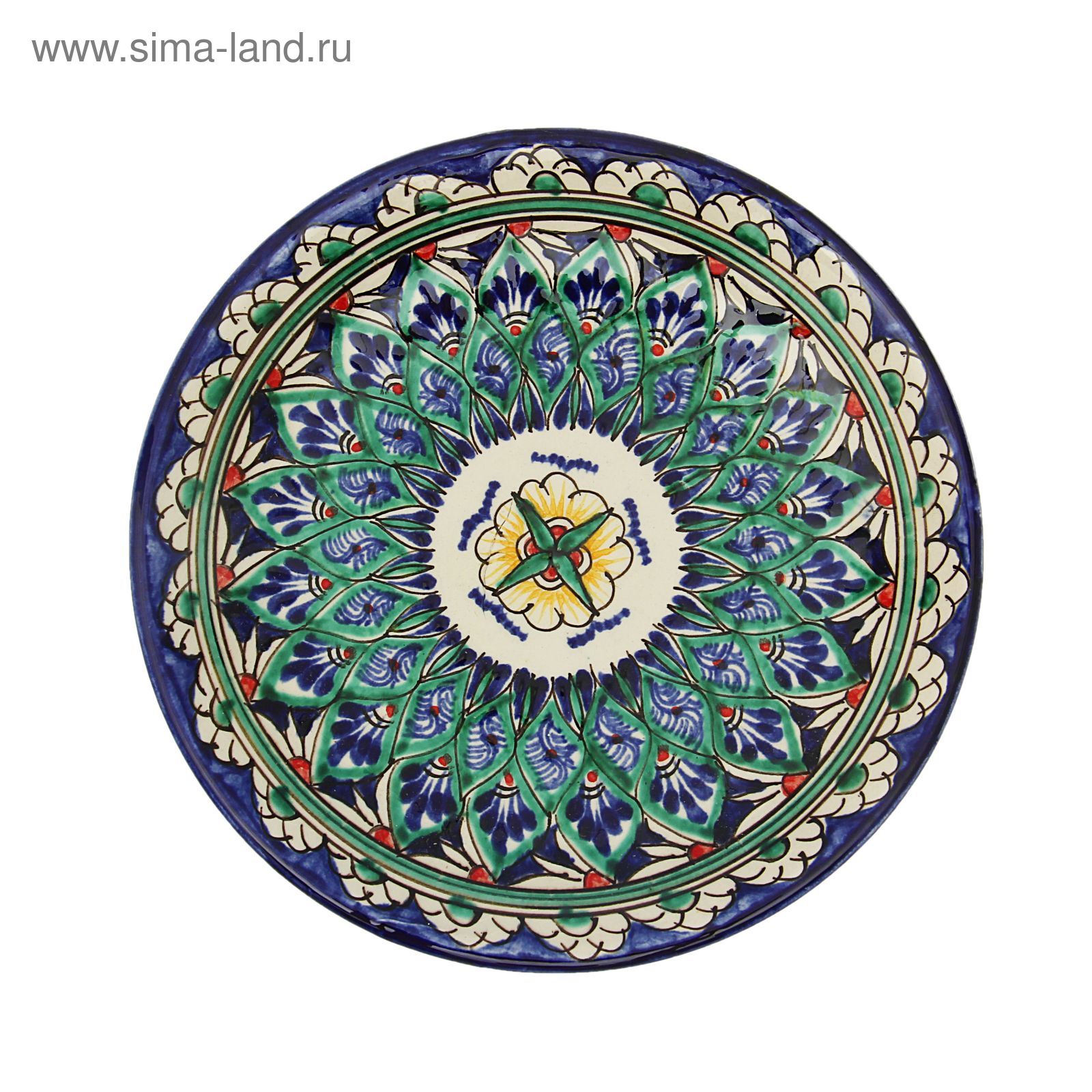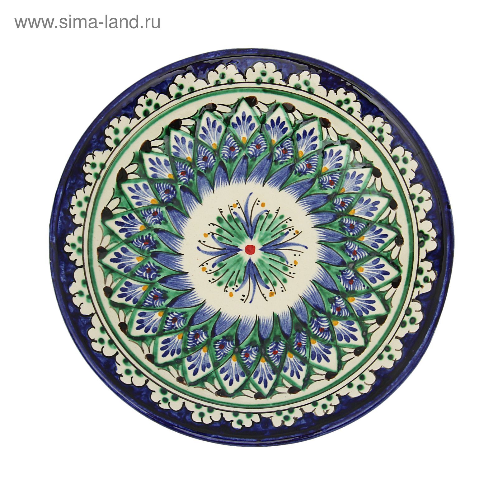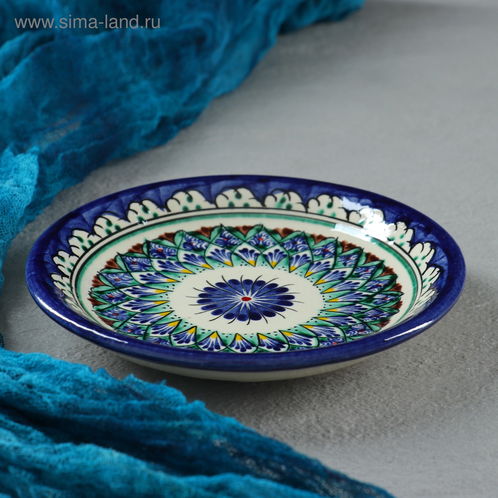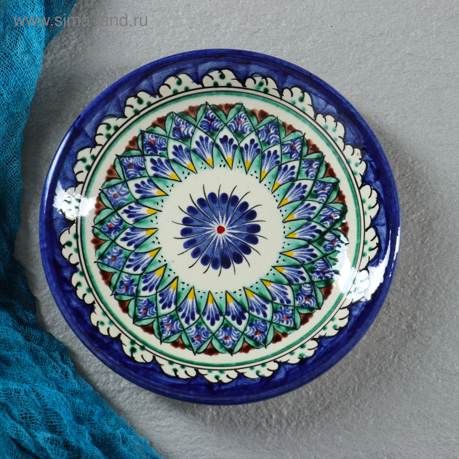 Тарелка риштанская керамика "цветы", синяя, плоская, 15 см, микс
