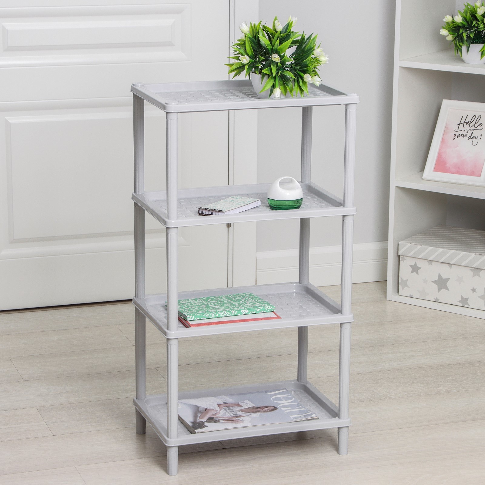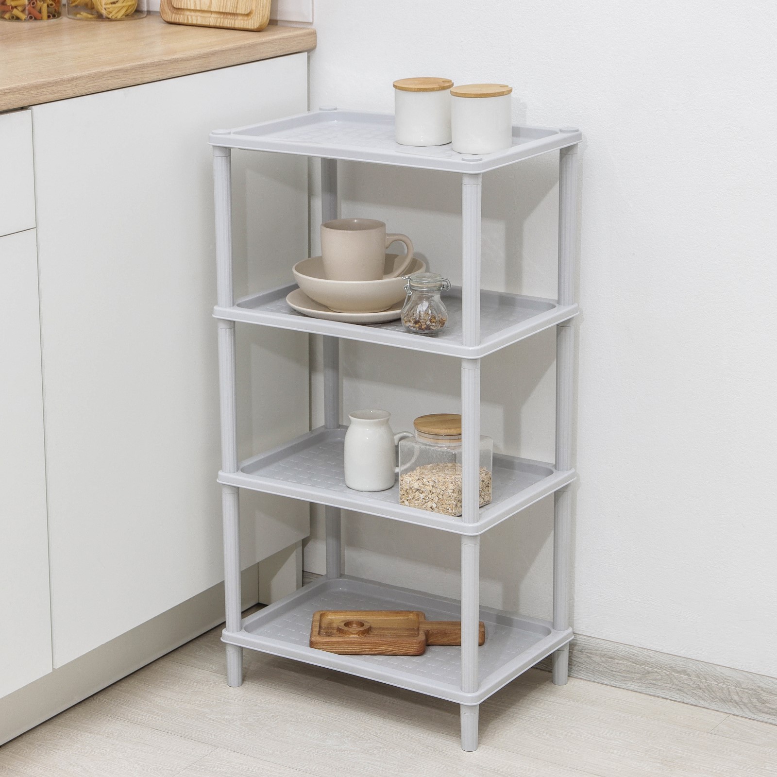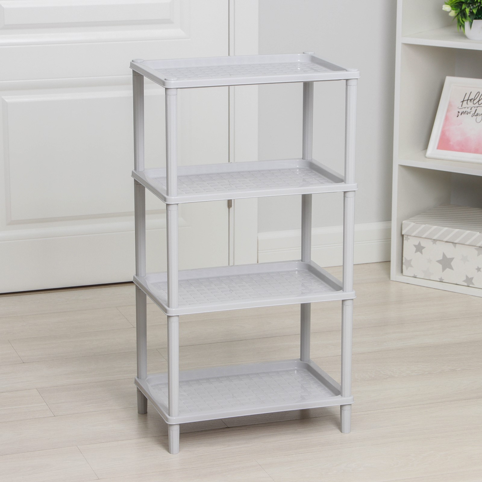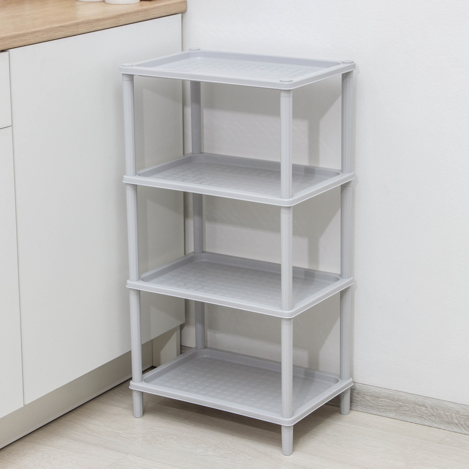 Этажерка напольная 4-х секционная «флавия», цвет микс. Прочный пластмассовый корпус стеллажа выдерживает высокую нагрузку. Также этажерка обладает повышенной устойчивостью за счёт углового расположения опор. Удобная, компактная, но в то же время вместительная, она прекрасно впишется в пространство любого помещения. Изделие можно расположить на кухне, в прихожей, ванной, гостиной, детской или спальне. Этажерка найдёт своё применение: дома — для хранения обуви, одежды, хозтоваров, посуды, принадлежностей для душа или игрушек;в гараже — для рабочих приспособлений, таких как отвёртки, молотки, шурупы, гайки и прочие мелкие вещи;на даче — для садового инструмента или предметов в домике. Расстояние между полками - 23 см. Цвет: МИКС Ширина, мм: 420 Глубина, мм: 290 Высота, мм: 810 parts count: 0 Количество секций: 4 На колёсиках: Нет Материал: Полипропилен Материал: Пластик Пищевой пластик: Нет  развернуть описание ▼