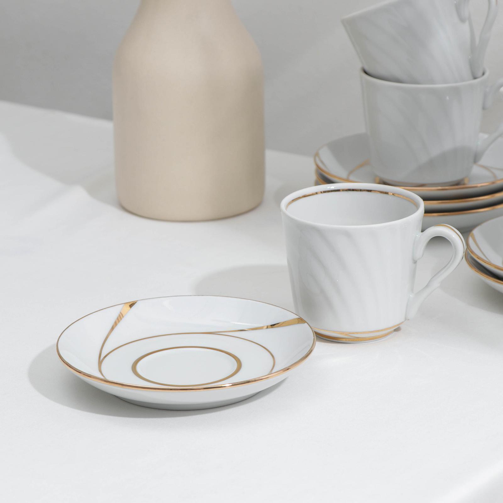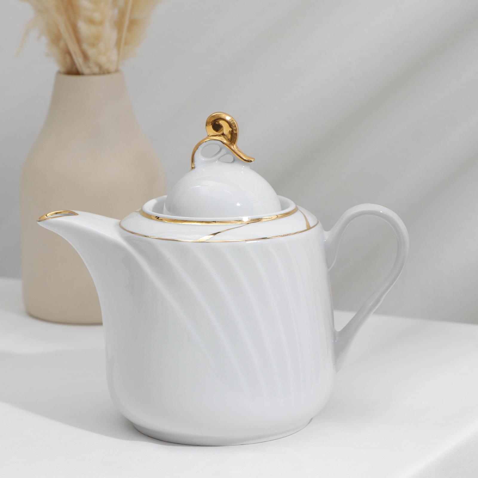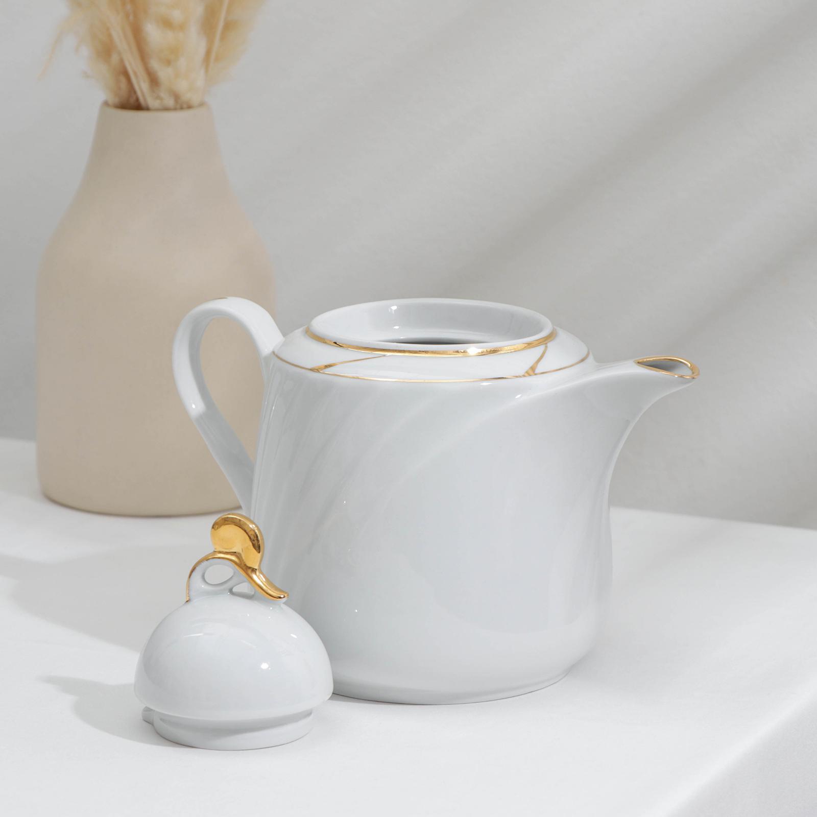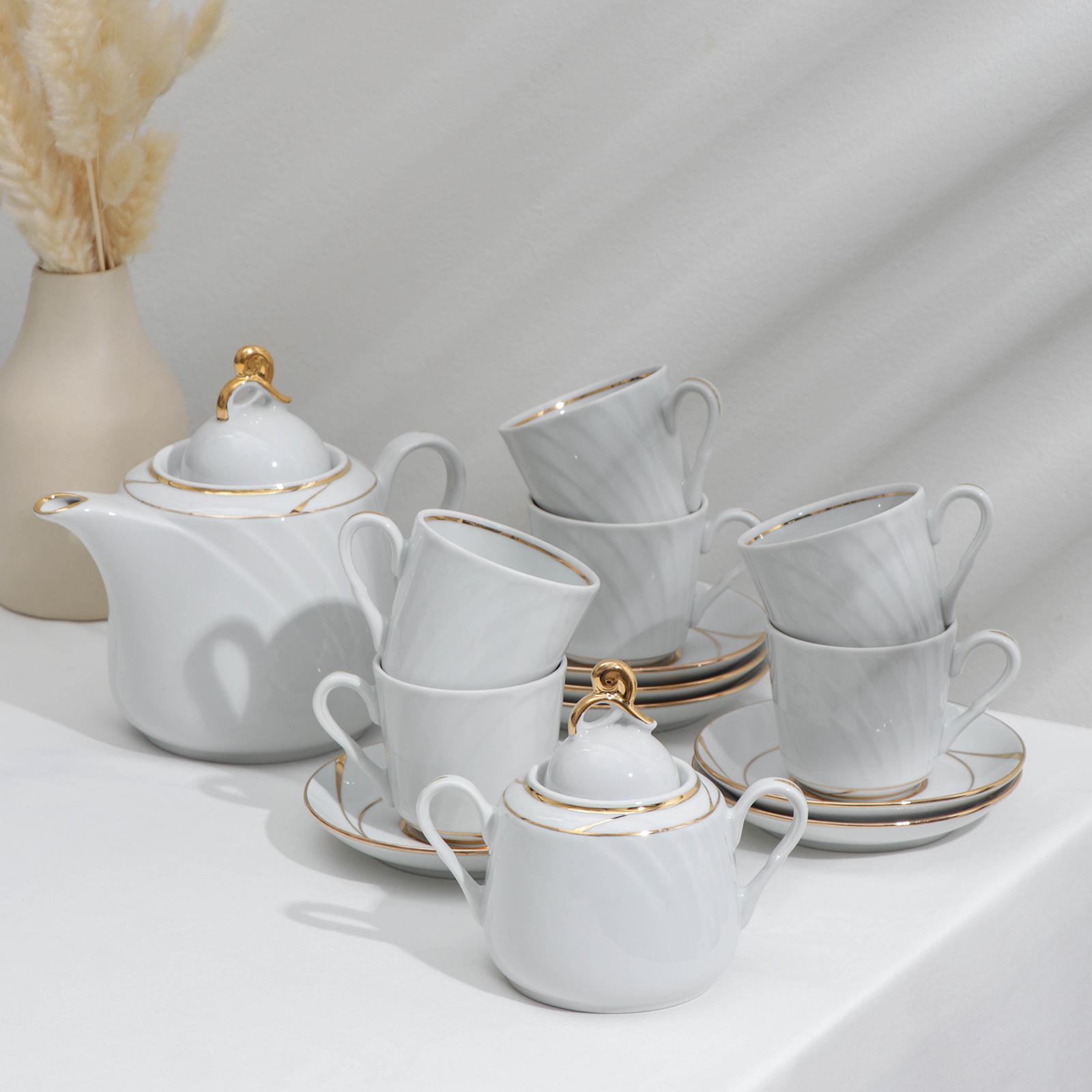 Сервиз чайный фарфоровый «бомонд», 14 предметов: чайник 1 л, 6 чашек 220 мл, 6 блюдец D=14 Cм, сахарница 400 мл