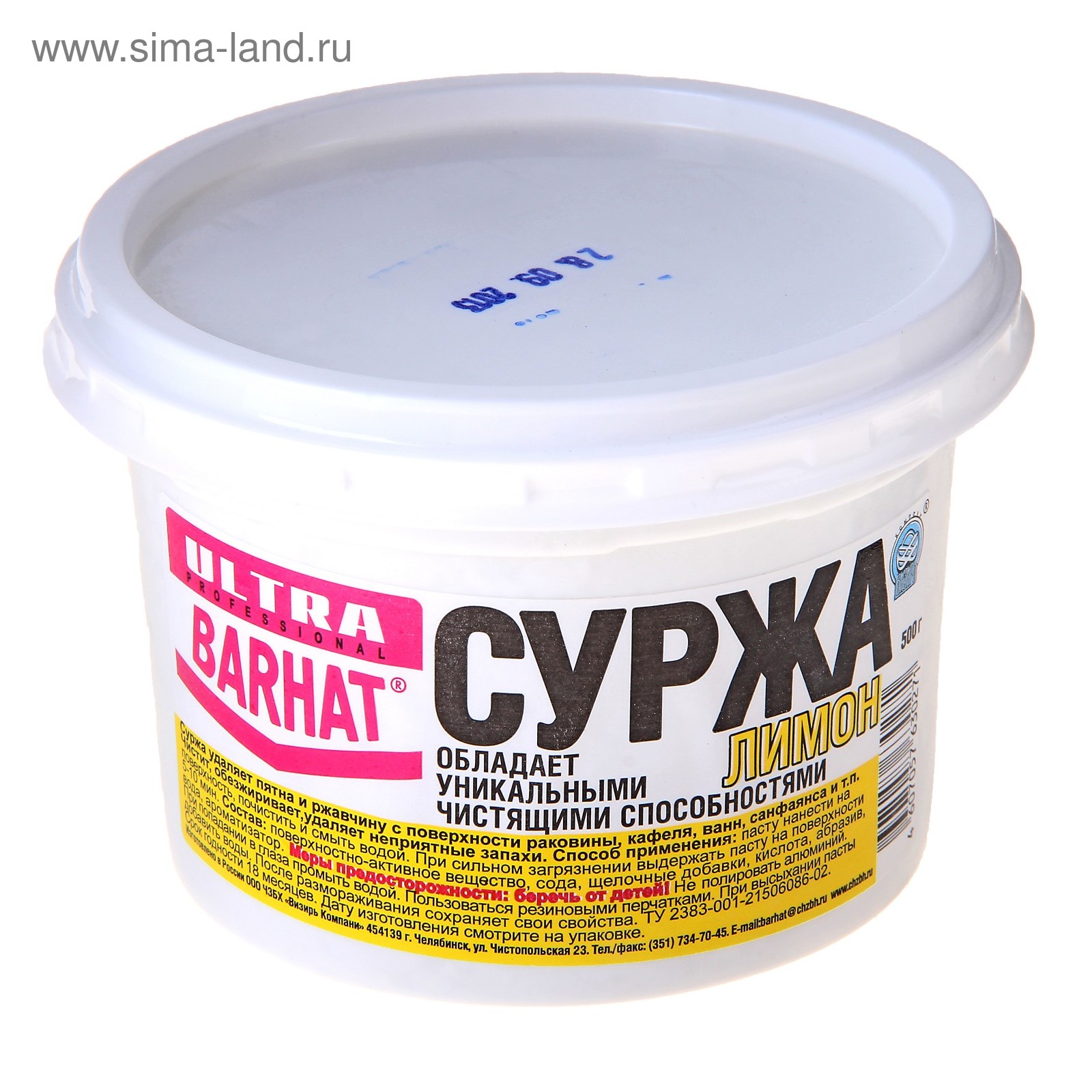 Чистящая паста для чистки суржа, "лимон", 500 г. Обладает уникальными чистящими способностями, удаляет пятна и ржавчину с поверхности раковины, кафеля, ванн, санфаянса и т. п. Чистит и обезжиривает, удаляет неприятные запахи. Способ применения: пасту нанести на поверхность, почистить и смыть водой. При сильном загрязнении выдержать пасту на поверхности 5-10 минут. Меры предосторожности: беречь от детей. Не полировать алюминий. При попадании в глаза промыть водой. Пользоваться резиновыми перчатками. При высыхании пасты добавить воды. После размораживания сохраняет свои свойства. Состав: 30% мраморный абразив, 5% ПАВ, кислота, вода, ароматизатор. Вес, г/Объём, мл: 500 Назначение: Универсальное Эффект: Очищение Эффект: Дезинфицирующее  развернуть описание ▼