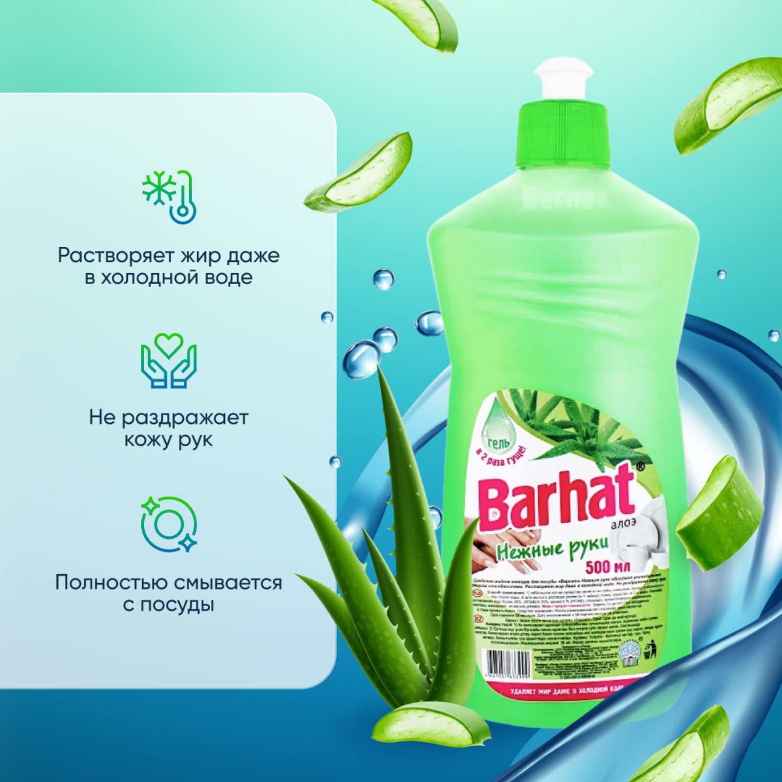 Средство для мытья посуды "бархат нежные руки", алоэ, 500 мл