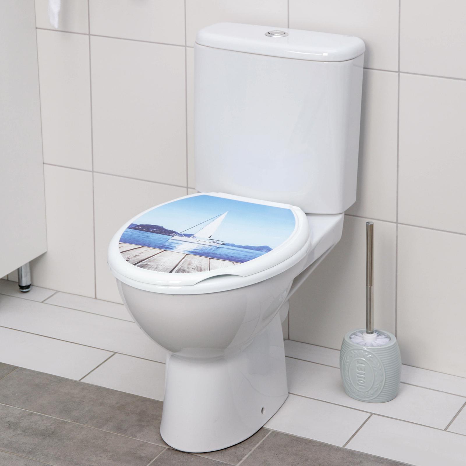 Сиденье для унитаза с крышкой росспласт «декор. яхта», 44,5 х 37,5 см, цвет белый