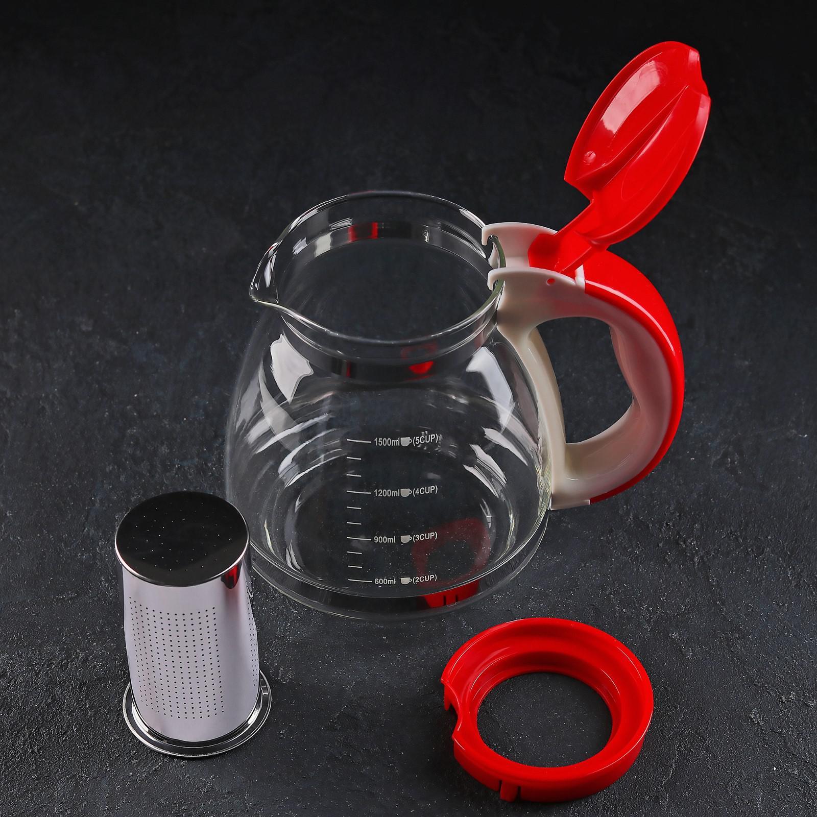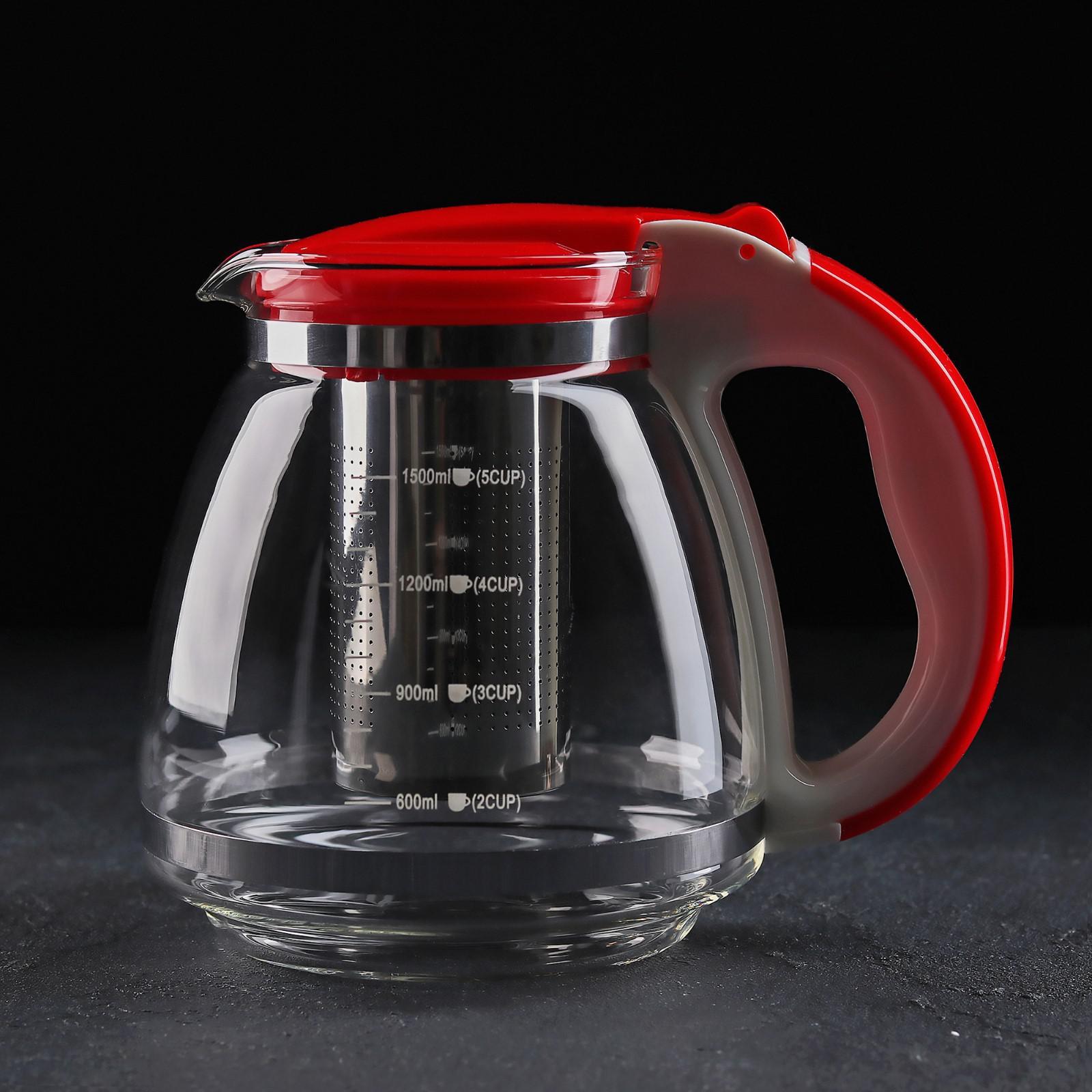 Чайник стеклянный заварочный, 1,5 л, с металлическим ситом, цвет микс