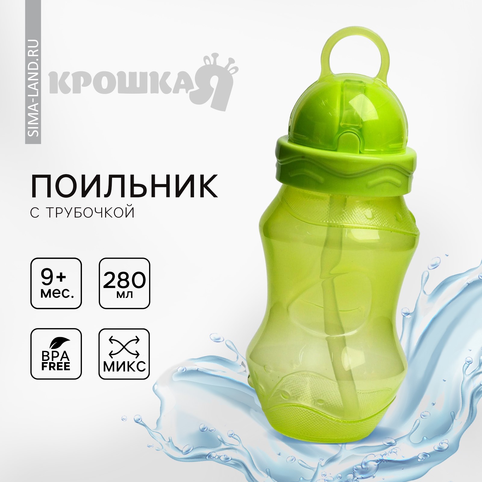 Поильник детский с силиконовой трубочкой, 280 мл., цвета микс