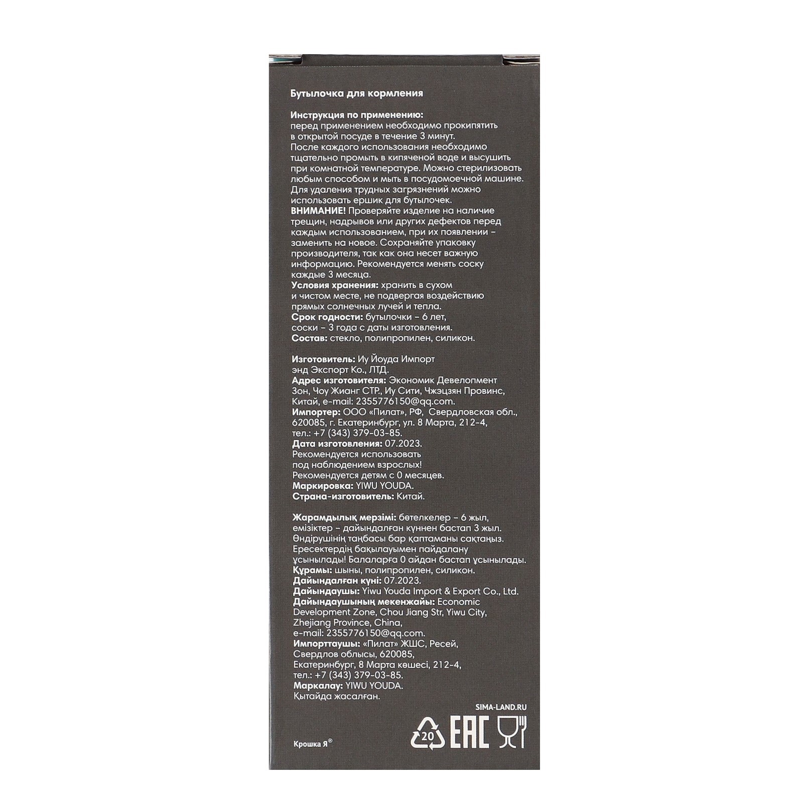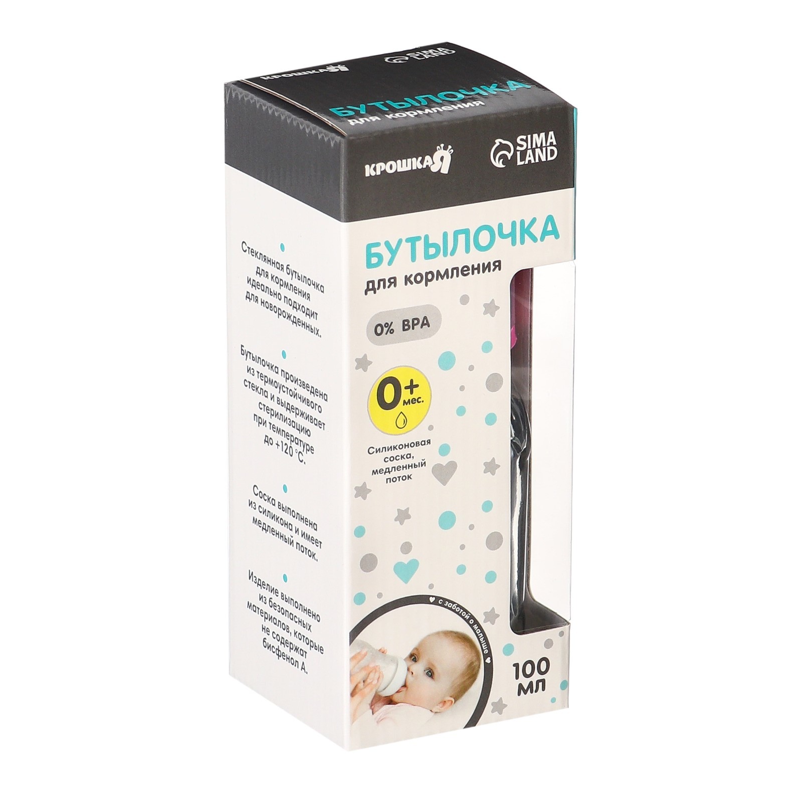 Бутылочка для кормления крошка я, классическое горло, средний поток, от 0 мес., 100 мл., стеклянная, микс