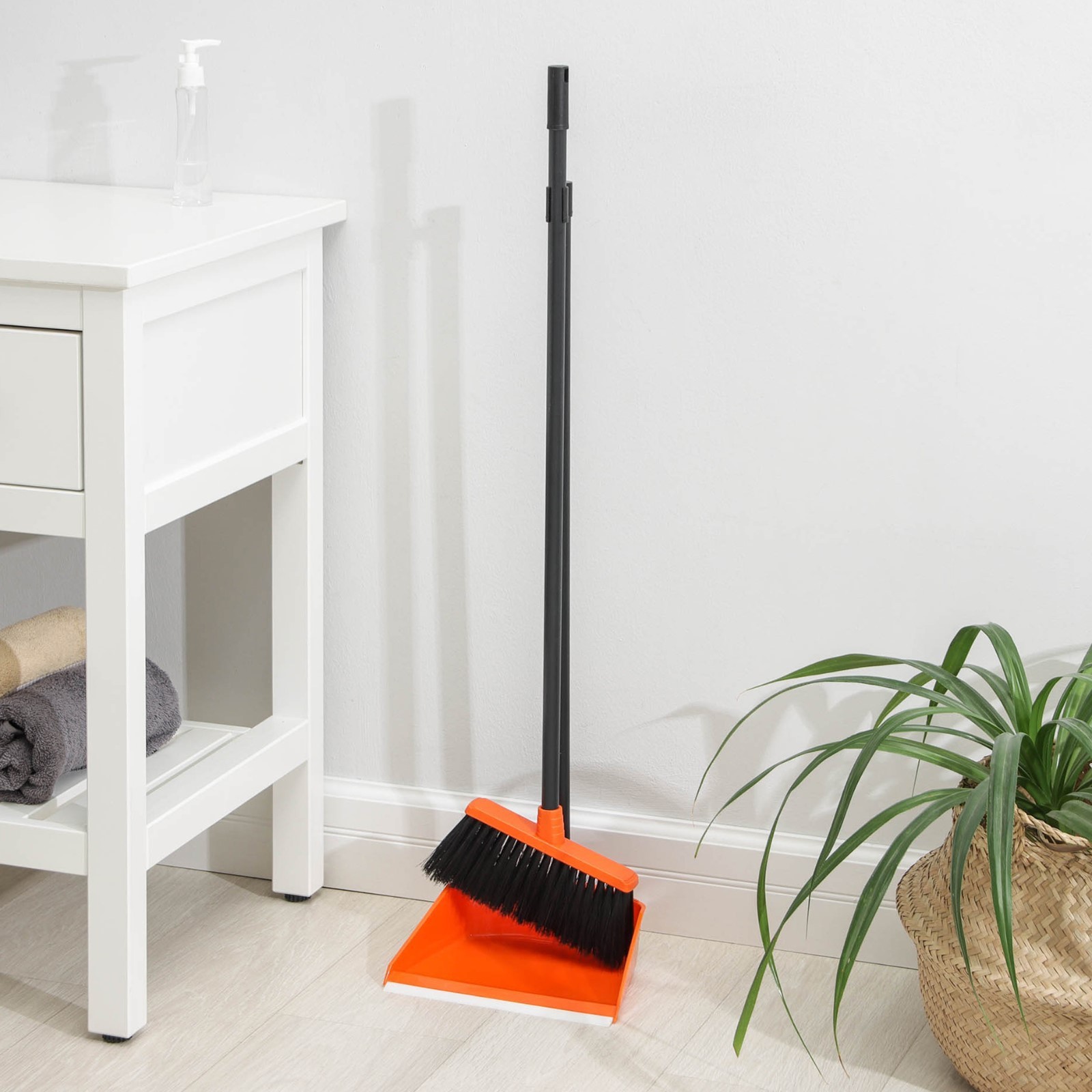 Щётка для пола с совком «ленивка», 19,5x25x90 см, цвет оранжевый.   Комплект создан для комфортной уборки. Функциональная особенность предлагаемого комплекта-стойки заключается в длинных ручках изделий. Эргономичная конструкция позволяет эффективно собирать мусор и при этом не наклонять спину. Отличный вариант для сотрудников клининговых компаний и владельцев больших домов.  В нашем ассортименте представлены модели разных цветов. Вы без труда сможете найти полезного бытового помощника, который будет идеально подходить к домашнему или офисному интерьеру.  Цвет: Оранжевый С совком: Да Длина ручки, см: 70 Длина ручки, см: 75 Вид: Щётка для пола Материал: Пластик Материал колодки: Пластик  развернуть описание ▼