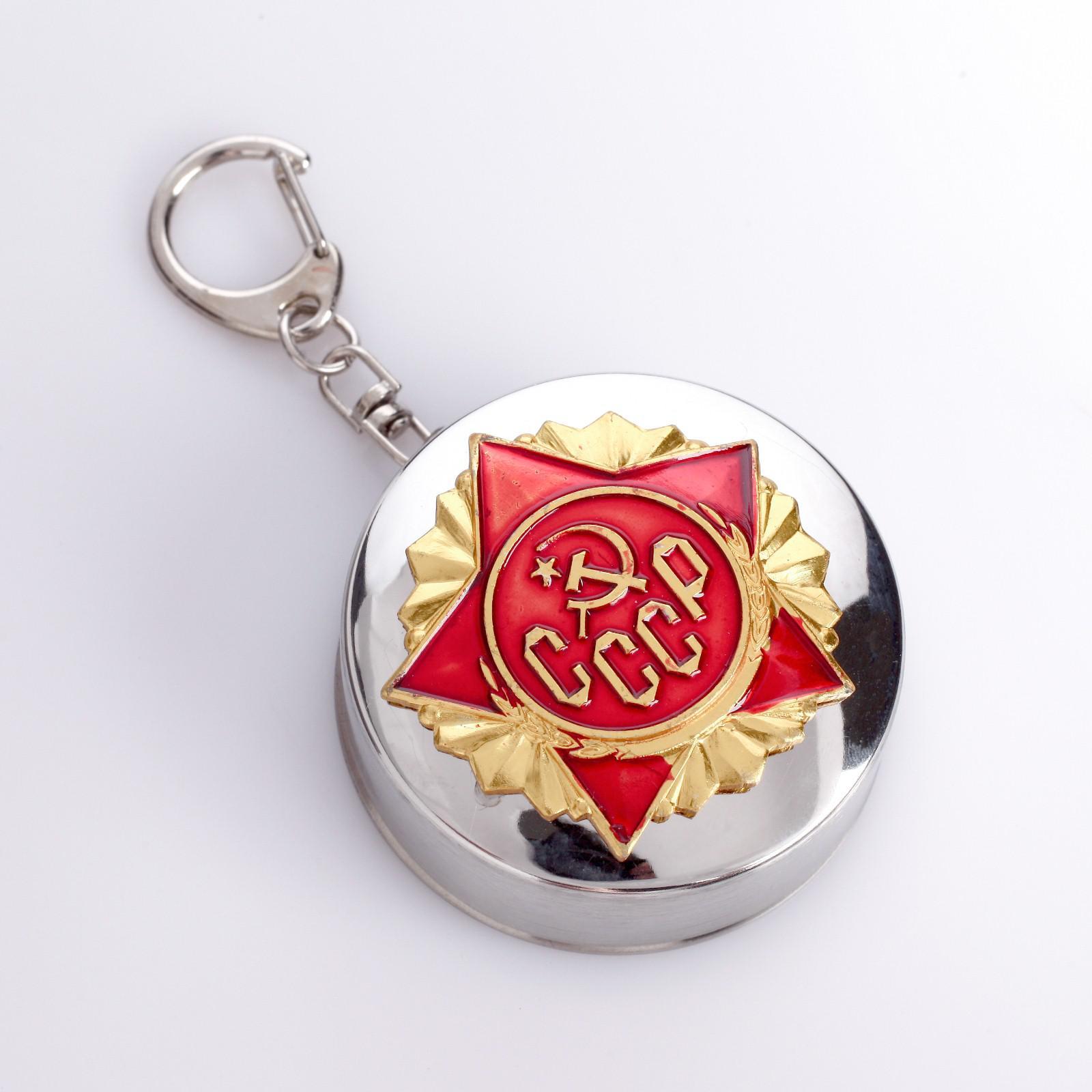 Складной стакан с карабином, серия: 23 февраля, "ссср", 150 мл, d-5 см. Стакан складной многоразовый объемом 150 мл, изготовлен из высокого качества 304 нержавеющей стали. Универсальный вариант для туристических походов, путешествий, рыбалки, охоты или выездов на природу. Он не только красиво смотрится, но и обеспечивает долгий срок службы изделия. Легко моется и подходит для повседневного использования. Отлично заменит стеклянные рюмки и бокалы, смотрится эффектно и стильно. Стакан, удобно помещается в руке и имеет оптимальный и вместительный объем 150 мл. Складной стакан удобно брать с собой в сложенном виде, он занимает мало места и его можно положить в карман или рюкзак, а это очень важно в походах. Стакан из детства вернет вас в беззаботное время СССР. Компактный раскладной стакан, складывающийся и раскладывающийся одним движением руки, имеет карабин, который можно легко зацепить на хлястик ваших брюк или рюкзак. Рюмка туристическая из нержавеющей стали закрывается крышкой, что позволяет ей быть всегда компактной, легко помещающейся в карман. Стопочка-брелок из нержавейки станет отличным подарком рыболову, охотнику, папе или маме, бабушке или дедушке, а еще коллеге или начальнику боссу на день рождения или 23 февраля, 9 мая, 8 марта, юбилей, новый год. Пойдет как кружка на пикник для путешественников. Это отличная альтернатива одноразовым стаканам. Цвет: Хромированный Ширина, см: 6 parts count: 0 Объём, мл: 150 tnved: 7323930000 Материал: Нержавеющая сталь Можно мыть в посудомоечной машине: Да Можно использовать в СВЧ-печи: Нет Текстура: Гладкая Для горячего: Да Вид: Стаканы  развернуть описание ▼