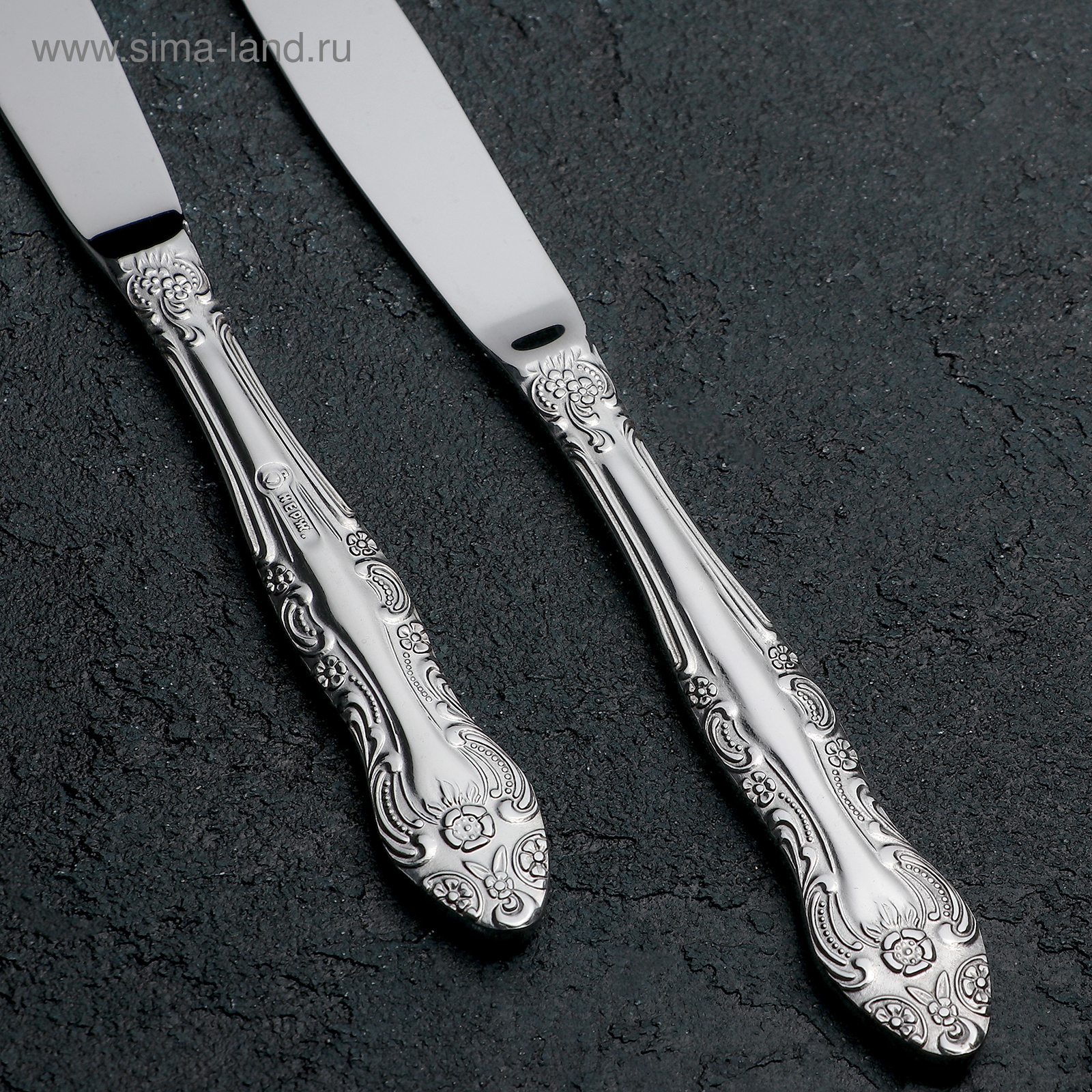 Нож столовый «тройка», h=21,5 см, тощниа 2 мм, цвет серебряный. Нож столовый Тройка – это отличный нож, который идеально подойдет к любому комплекту. Изящный, но незатейливый дизайн прекрасно впишется в любой комплект столовых приборов. Кроме того, рукоять эргономичная и удобно лежит в руке. Любой хозяйке на кухне необходимо иметь подобные столовые приборы, выполненные в классическом стиле. Материал ножа позволяет с легкостью ее очищать от загрязнений. Цвет: Серебристый Длина, см: 21.5 Материал ручки: Нержавеющая сталь Материал: Нержавеющая сталь Назначение: Столовые Можно мыть в посудомоечной машине: Да Цвет ручки: Серебристый Матовая поверхность: Нет Внешний вид: Без особенностей  развернуть описание ▼
