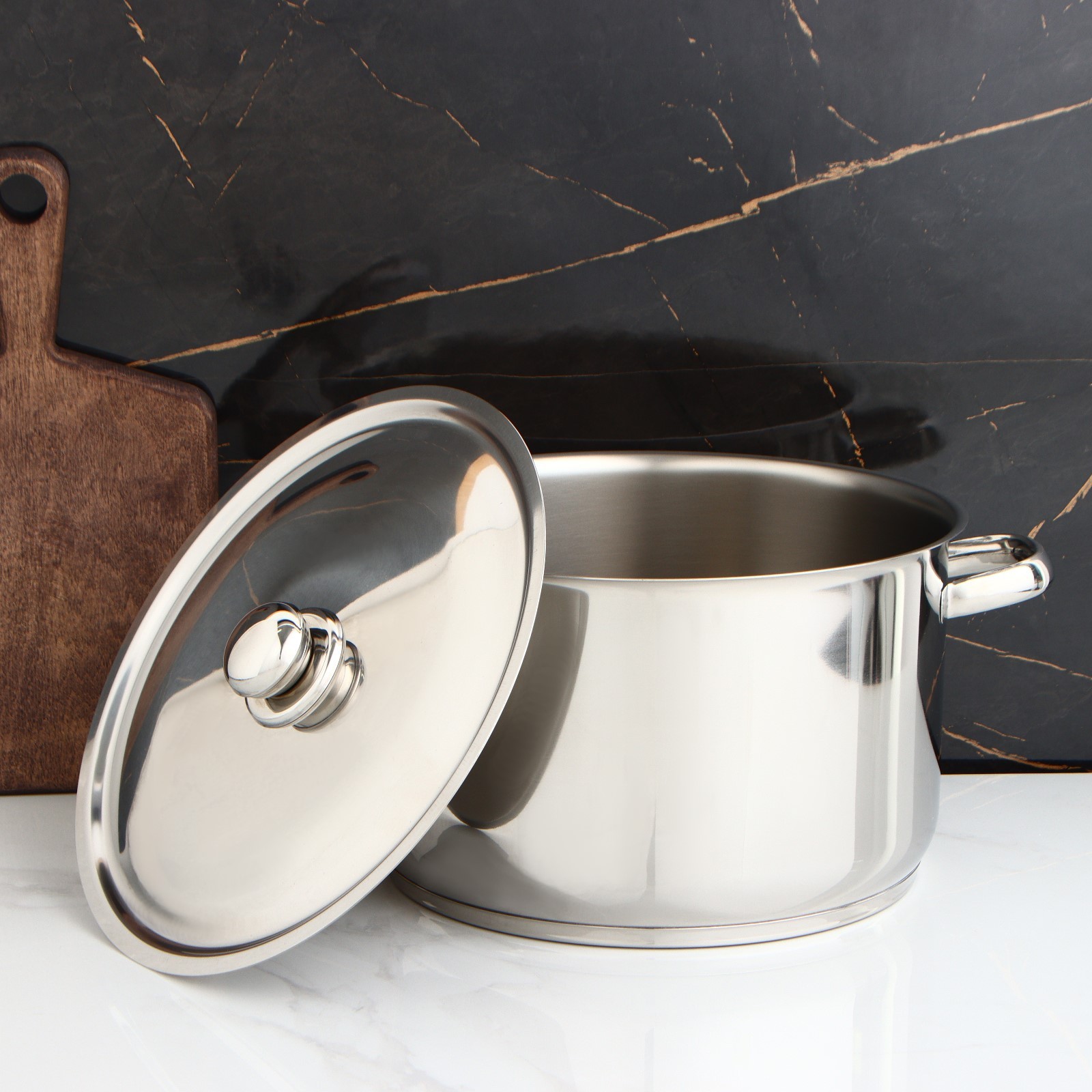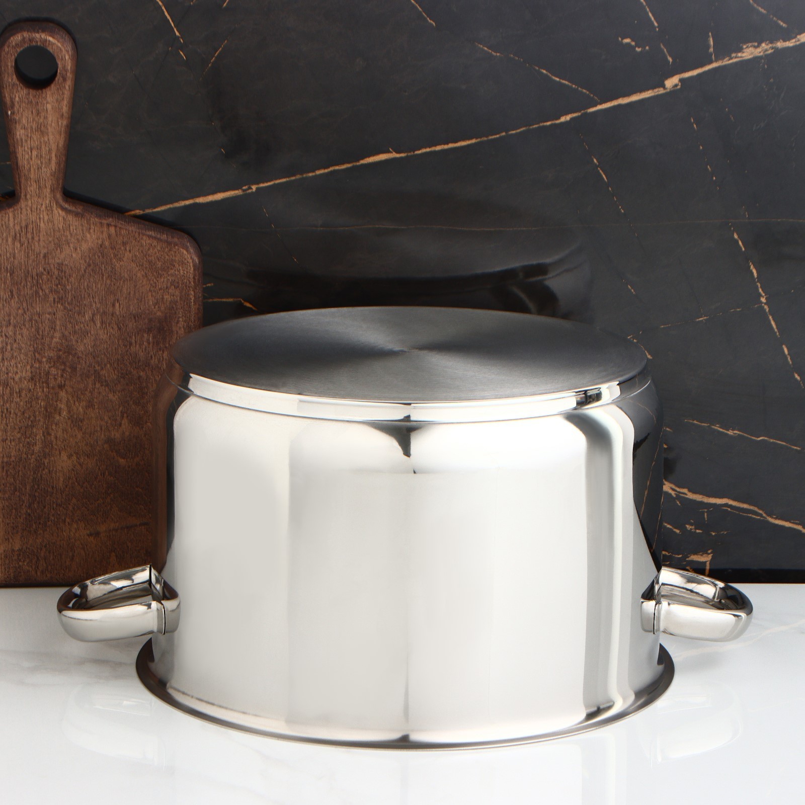Кастрюля цельнотянутая «профи», 10 л, D=28 см, металлическая крышка, с теплораспределительным слоем, капсульное дно