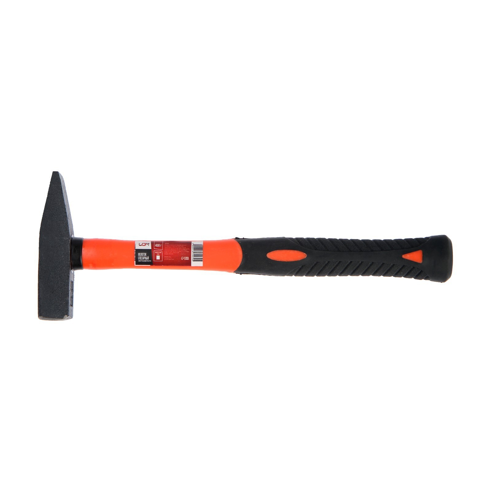 Молоток слесарный лом, квадратный боек, фиберглассовая обрезиненная рукоятка, 400 г
