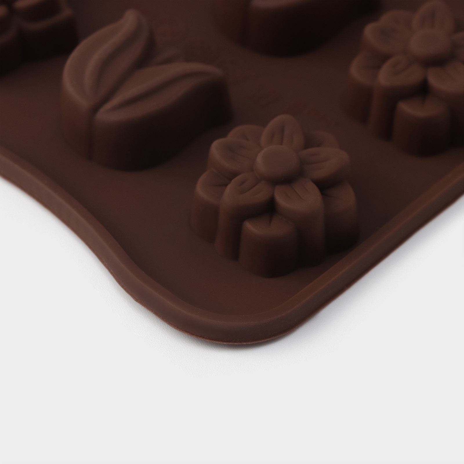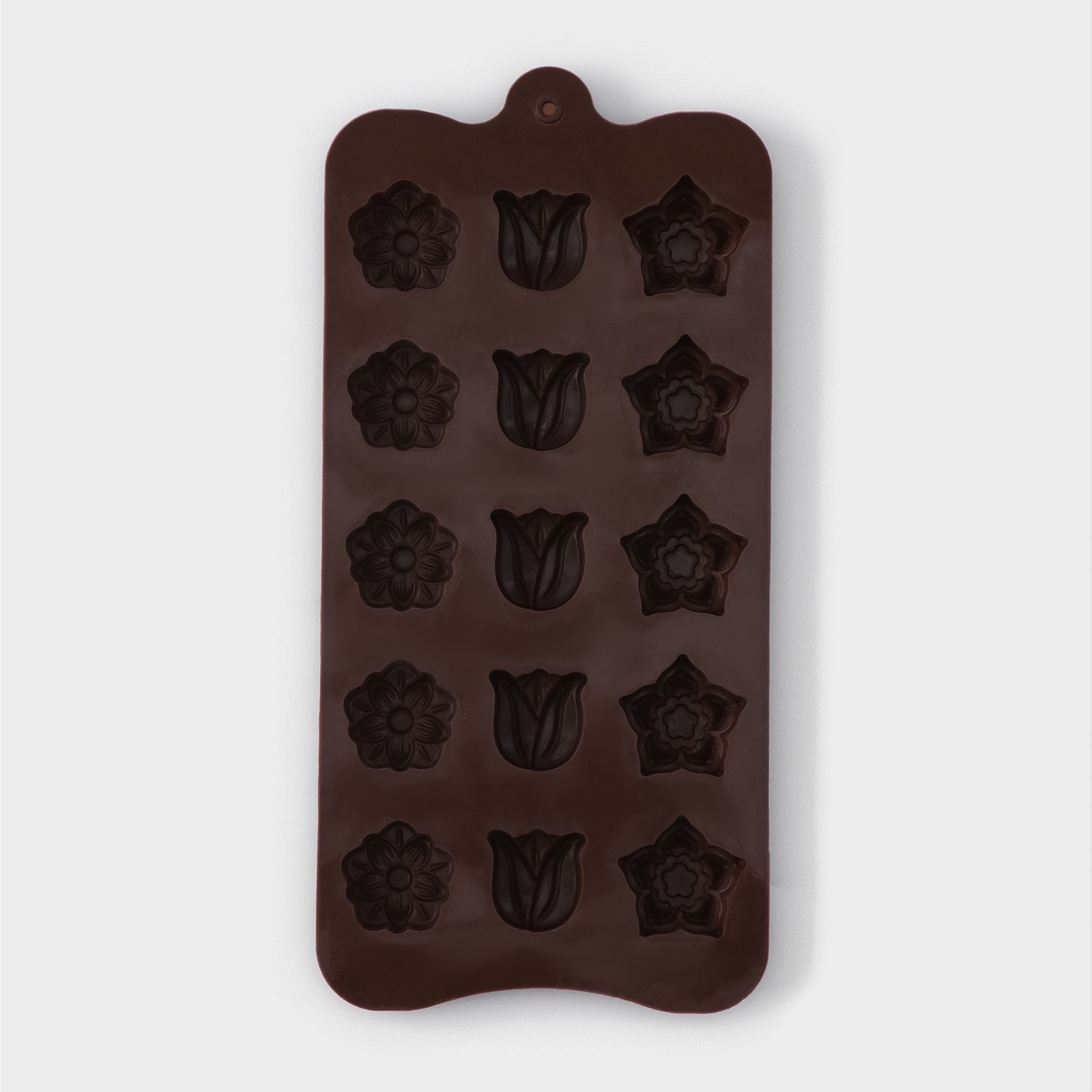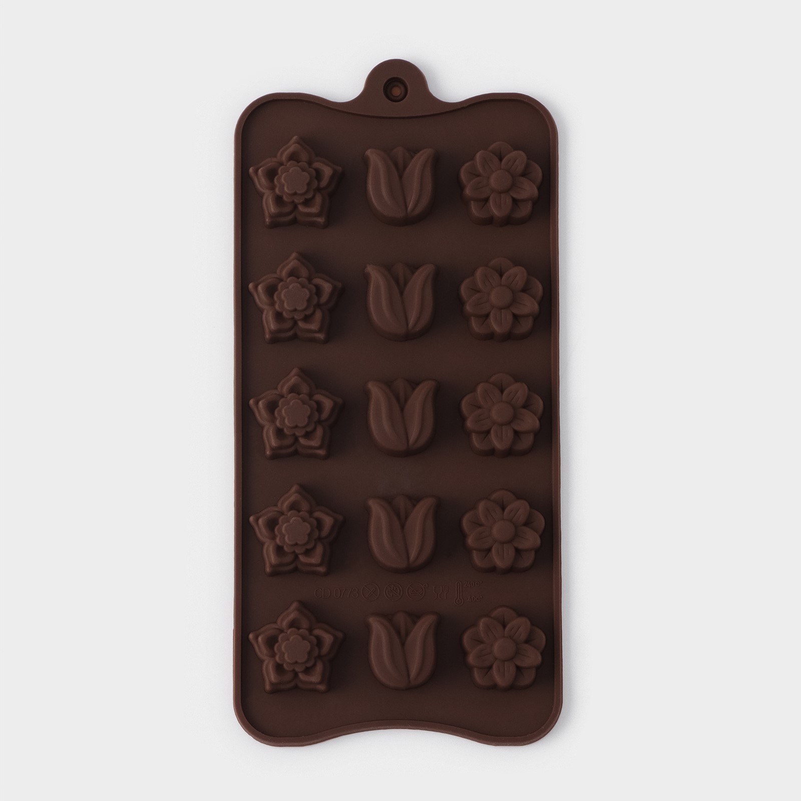 Форма для шоколада доляна «поляна», 20,5x10,5x1,5 см, 15 ячеек (2,3x2,3 см), цвет коричневый