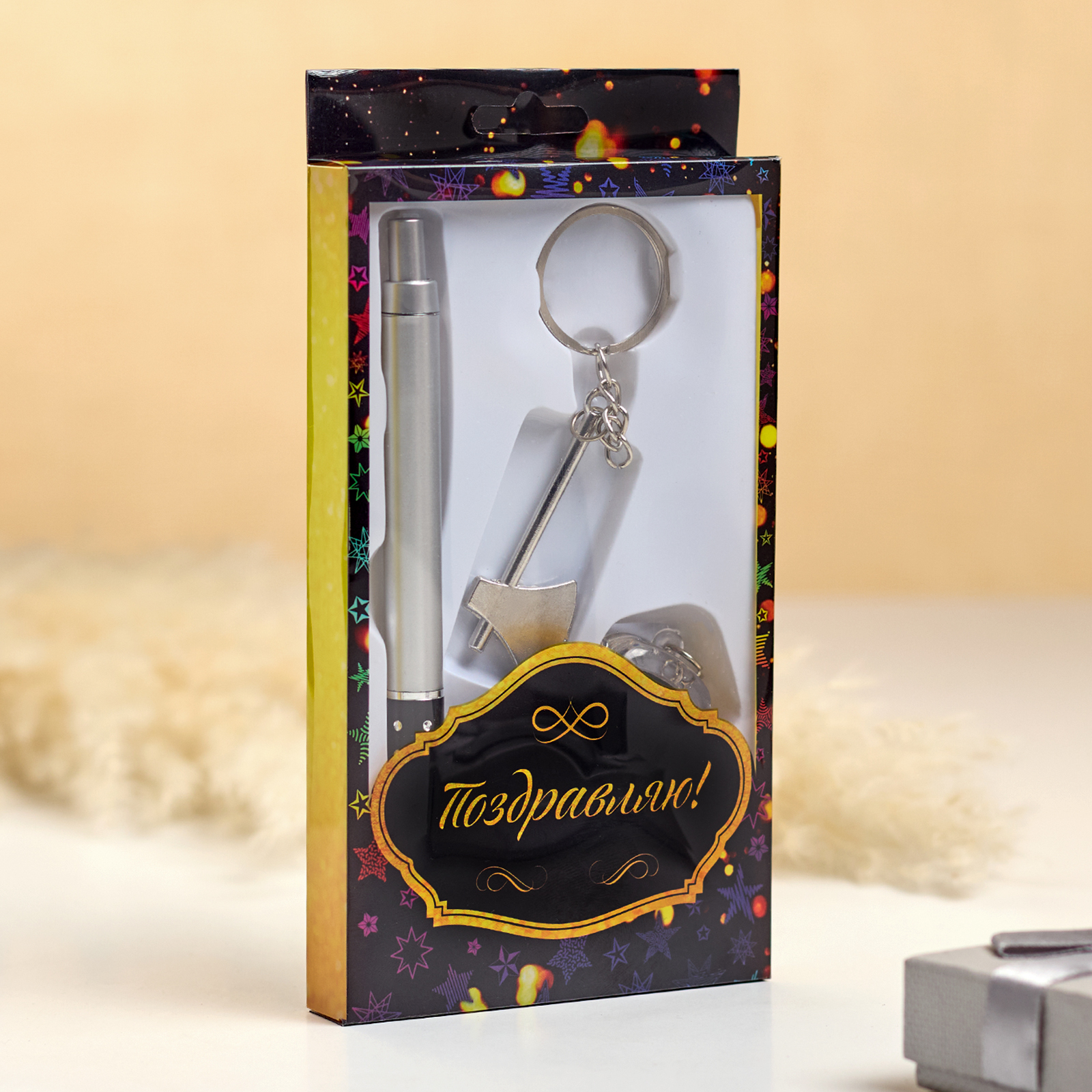 Набор подарочный 3 в 1, ручка, брелок-инструменты, фонарик, микс. Цвет:Хромированный|Для кого:Для мужчины|Для кого:Для мальчика|В наборе, шт.:3|Вид упаковки:Коробка картонная|Символ года:Нет|Тематика праздника:23 Февраля|Тематика праздника:Новый год|Тематика праздника:Универсальная тематика|Адресат:Без адресата|Материал:Пластик|Материал:Металл|Составляющие набора:Брелок|Составляющие набора:Фонарик|Составляющие набора:Ручка|Возраст:Для взрослых|Возраст:Для детей|Страна:Китай  развернуть описание ▼