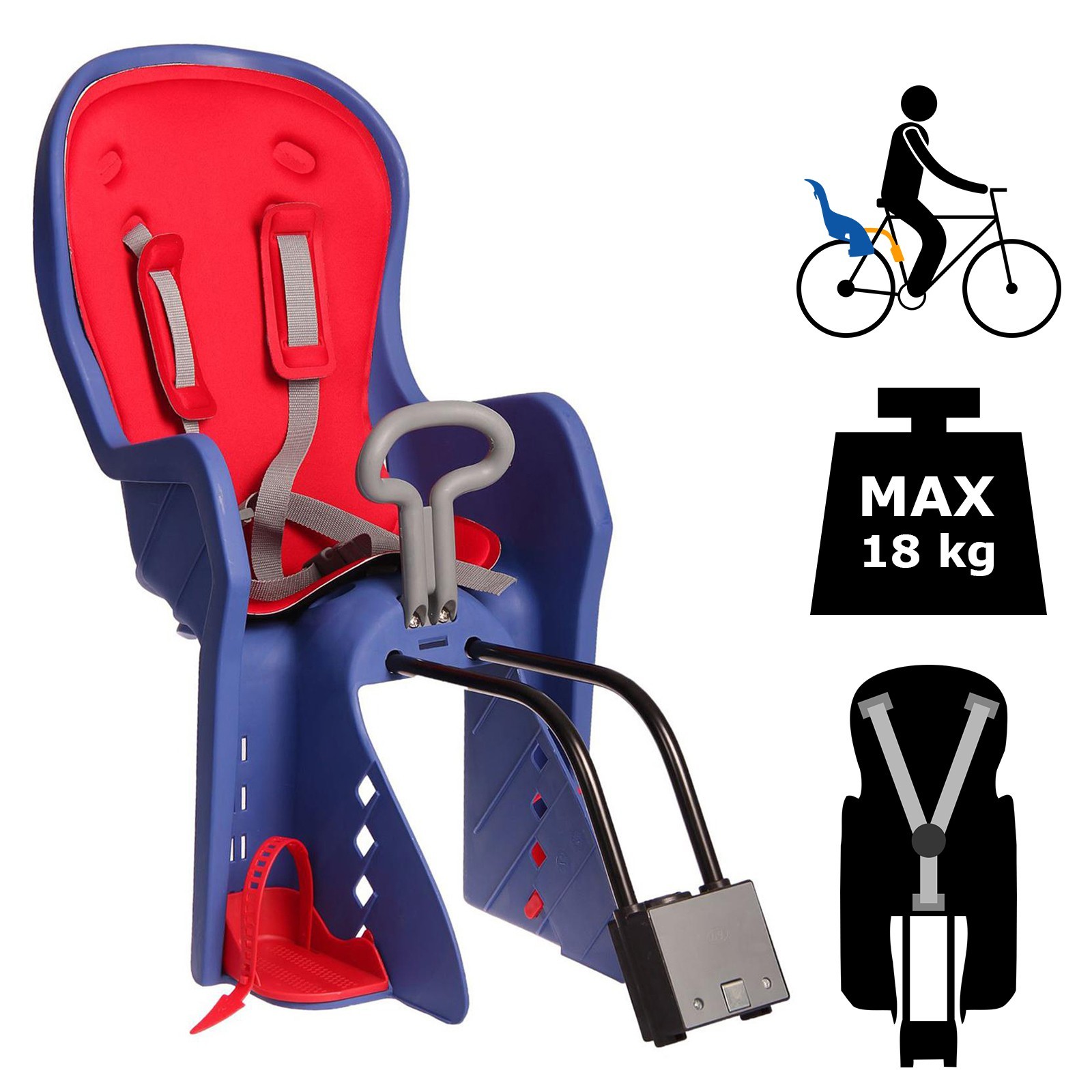 Велокресло заднее Bq-9 с ручкой, крепление на раму с кнопкой, цвет синий