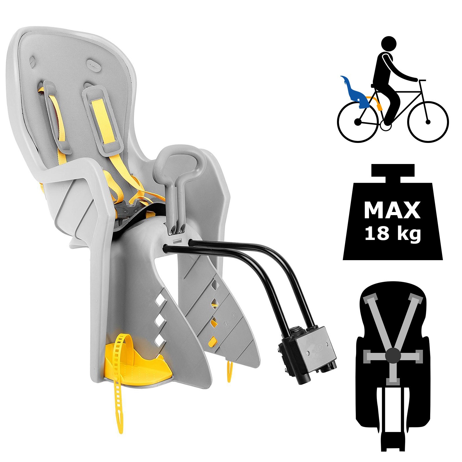 Велокресло заднее Bq-9-1 с ручкой, крепление на раму, цвет серый