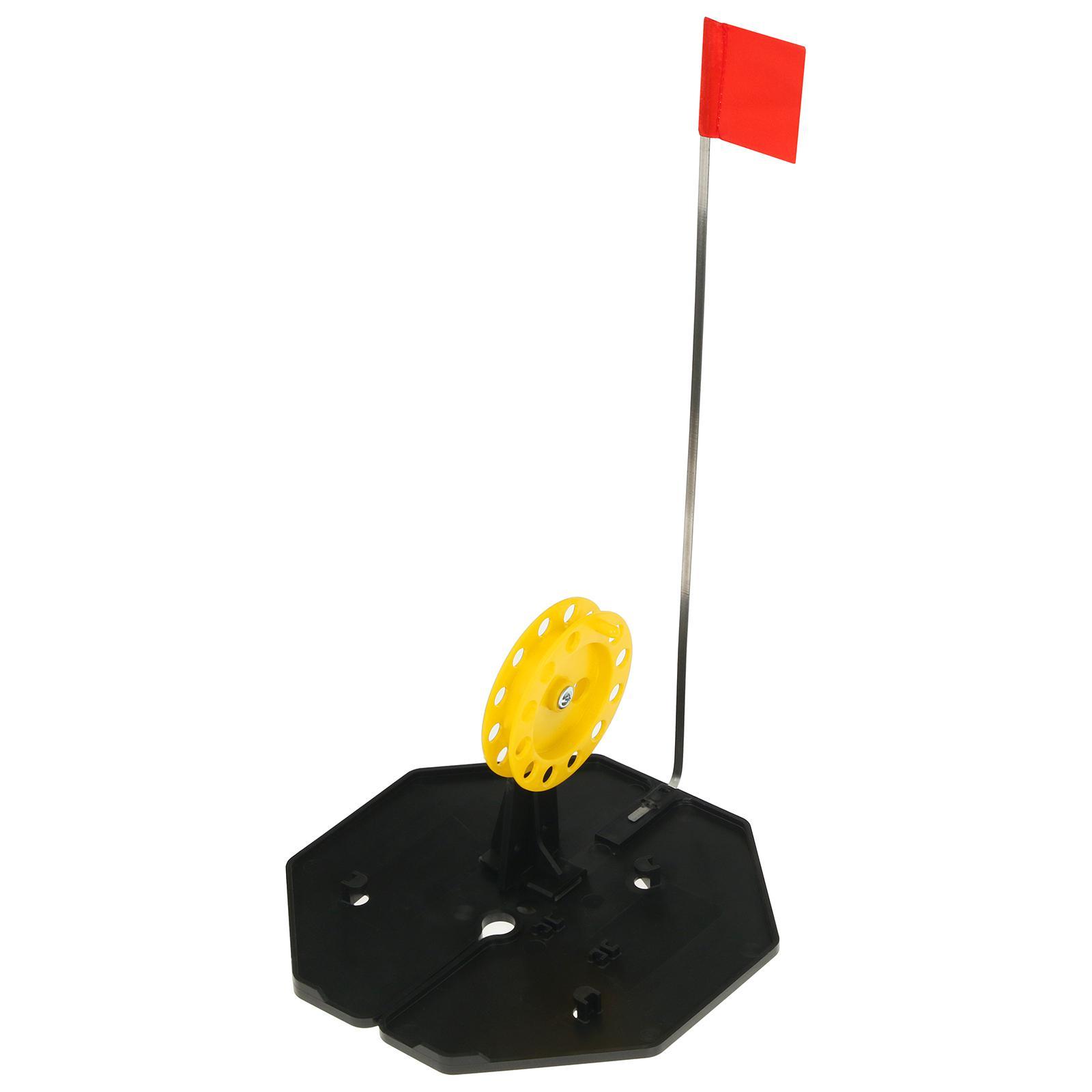 Жерлица зимняя "тонар" жз-03, d=210 мм. Жерлица "Тонар" имеет прочное восьмиугольное основание из морозоустойчивого полипропилена. Его форма позволяет хорошо закрыть лунку, чтобы предотвратить замерзание, и не даёт жерлице проворачиваться в снегу. В основании предусмотрены пазы под крепления для стойки с катушкой и сигнализатора, а также прорезь для лески. Когда клюнувшая рыба натягивает леску, катушка проворачивается, и изогнутый у основания флажок выпрямляется, подавая вам сигнал. Вращение катушки можно регулировать с помощью винта. Характеристики Комплектация: основание, стойка с катушкой, флажок-сигнализатор. Вес собранной жерлицы: 105 г. Диаметр основания: 21 см. Диаметр катушки: 8, 5 см. Диаметр, мм: 210 Диаметр катушки, мм: 85 Оснащённый: Нет Материал: Пластик  развернуть описание ▼