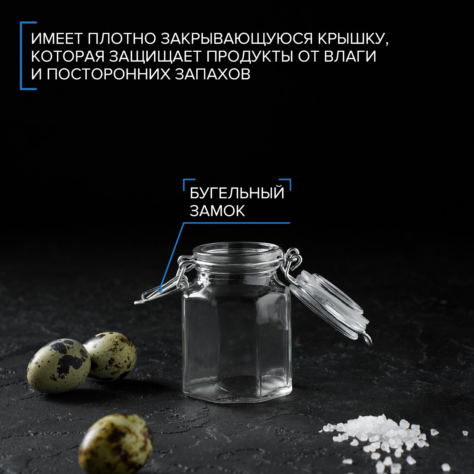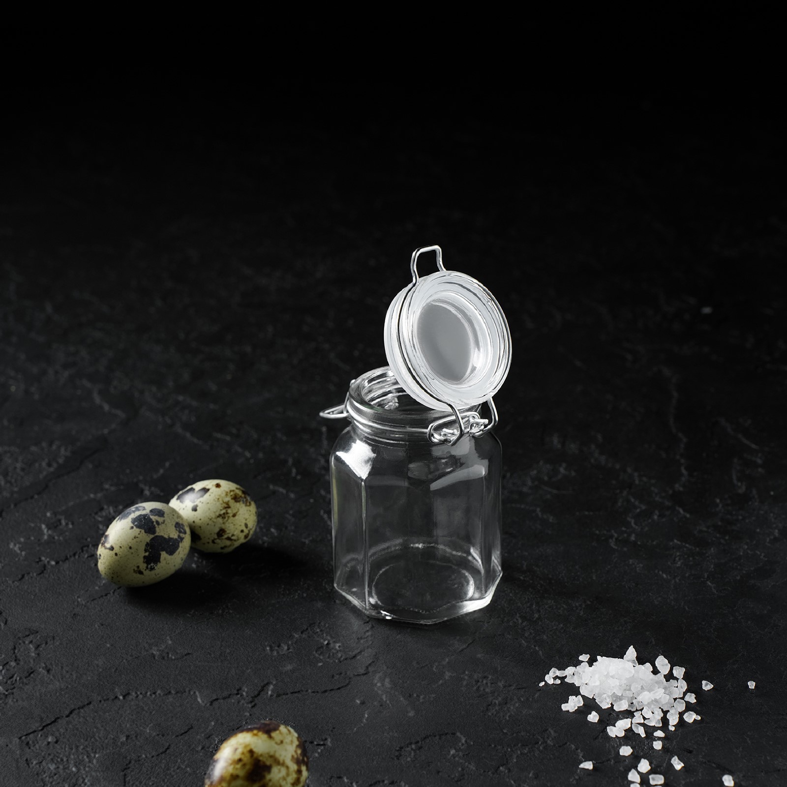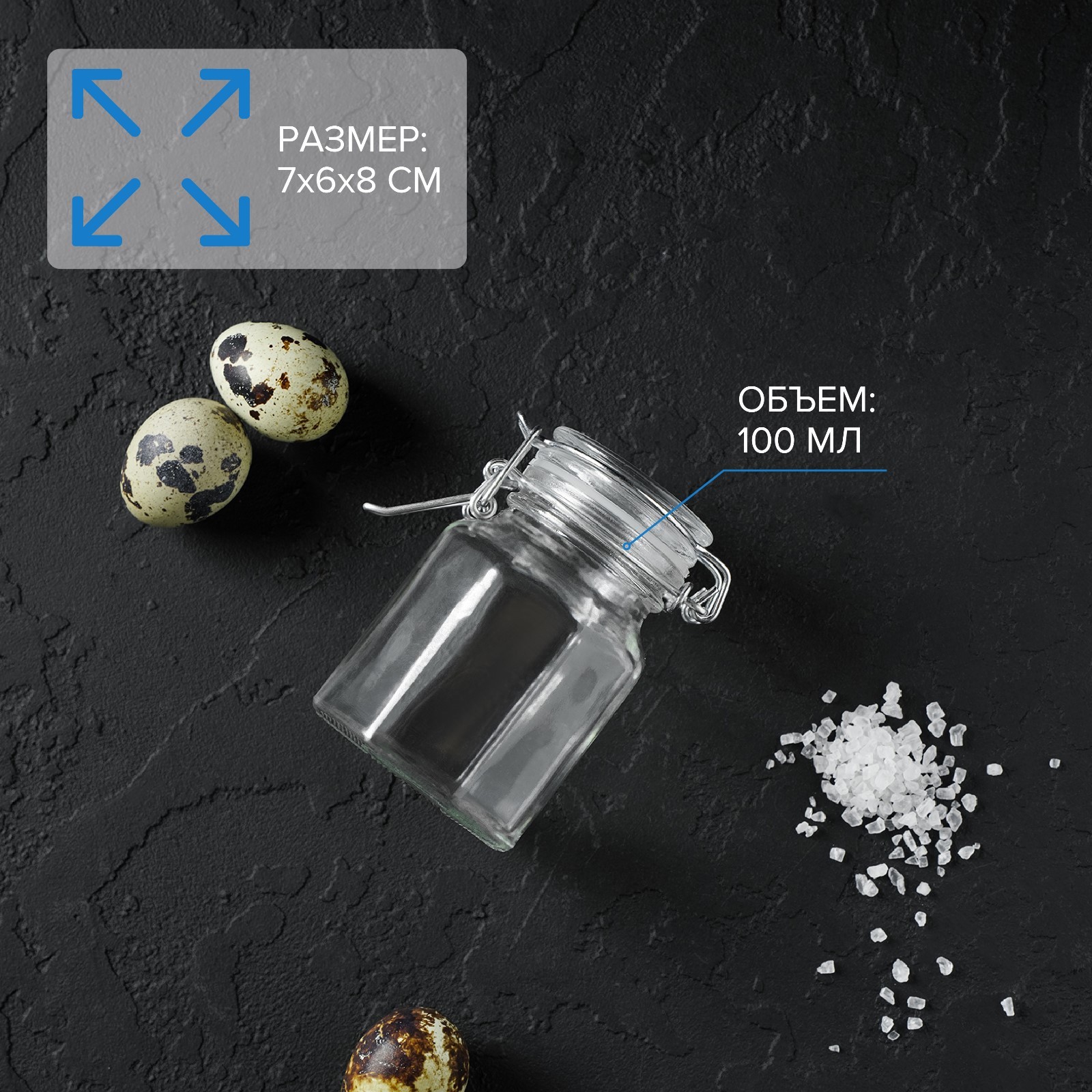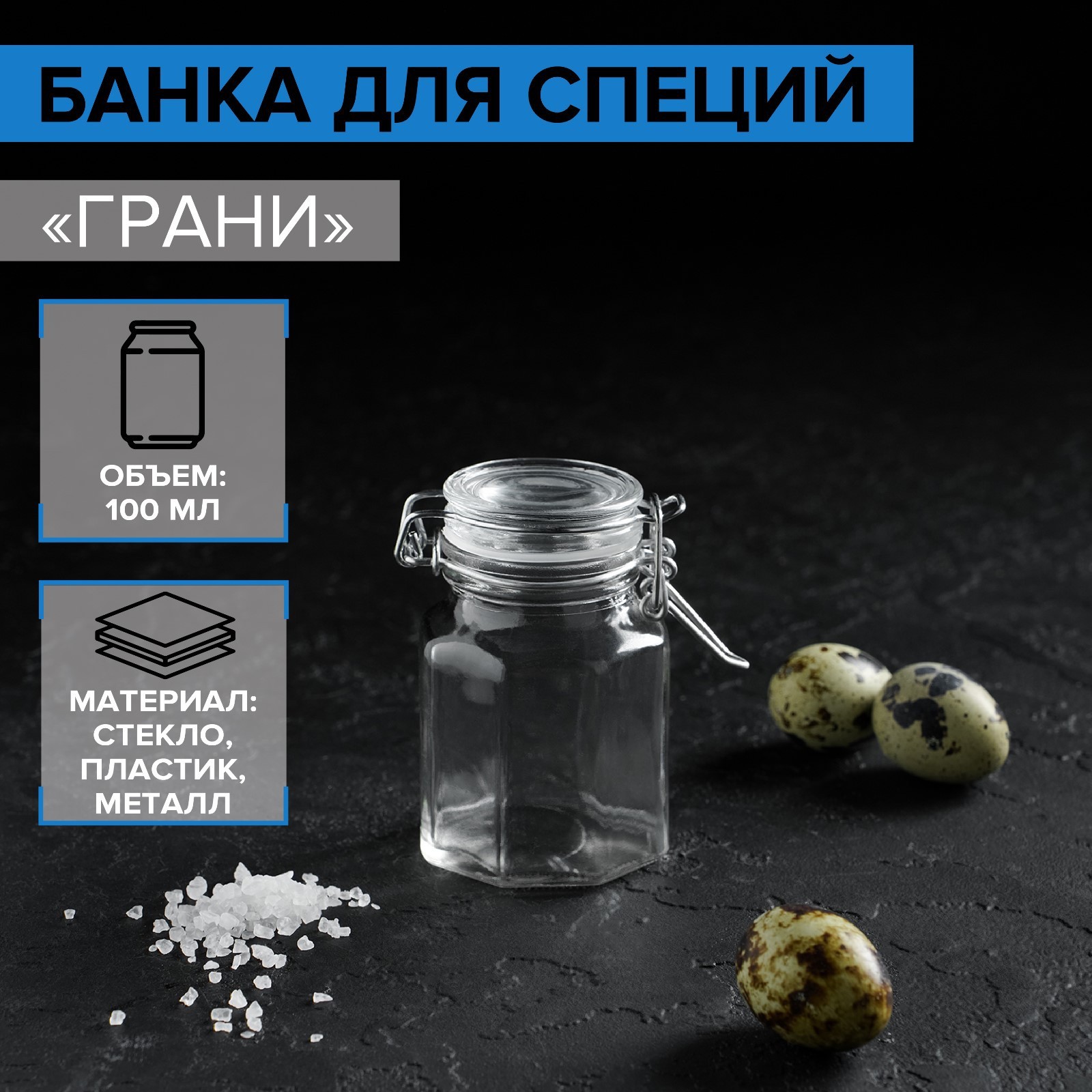 Баночка стеклянная для специй с бугельным замком доляна «грани», 100 мл, 6x7x8 см, 6 граней
