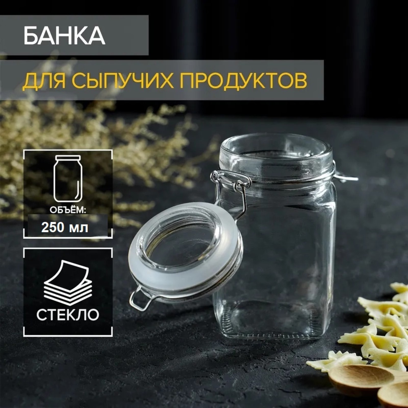 Банка стеклянная для сыпучих продуктов с бугельным замком доляна «оптима», 250 мл, 6,5x11,5 см